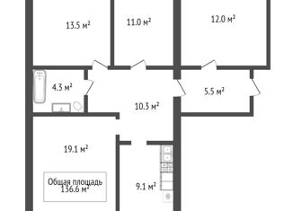 Общая площадь: 136.6 м2