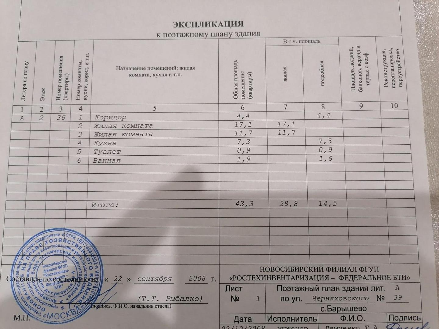 Общая площадь 43.3 м2