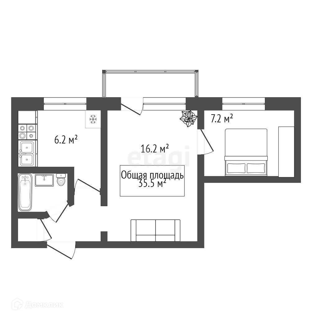 Общая площадь 35.2 м2