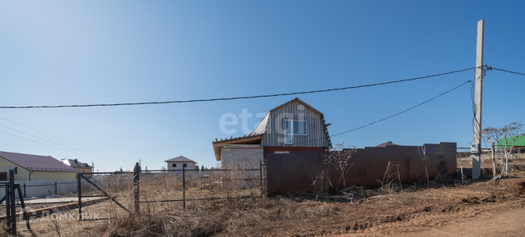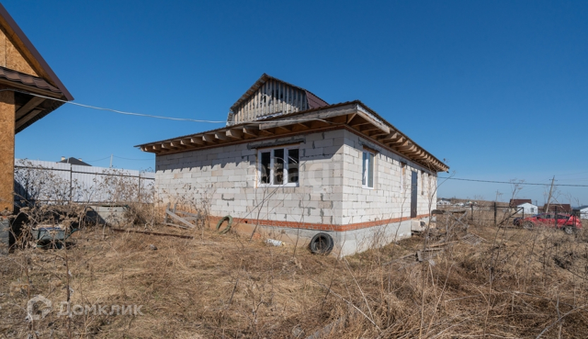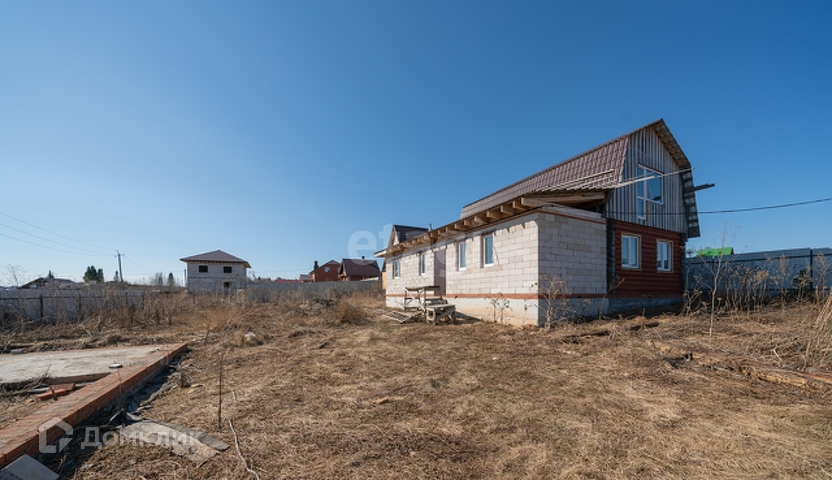 Участок 10 соток, огорожен забором из профнастила. Дом заведен под крышу из металлочерепицы два этажа, сруб 6*6 плюс пристрой из пеноблоков, благодаря этому дом получился 9*9, незавершен по строительству. Баня готова к эксплуатации и использованию, два этажа, комната отдыха, кухня, парилка и моечная.
