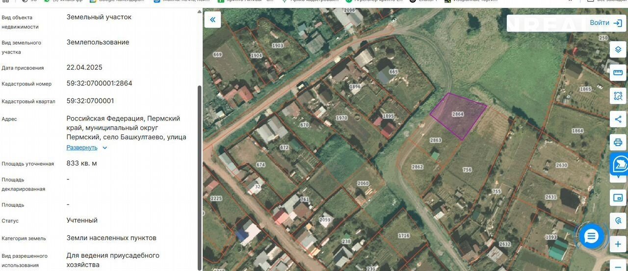 Площадь: 8,3 сотки (кaдaстpовый номер 59:32:0700001:2864).