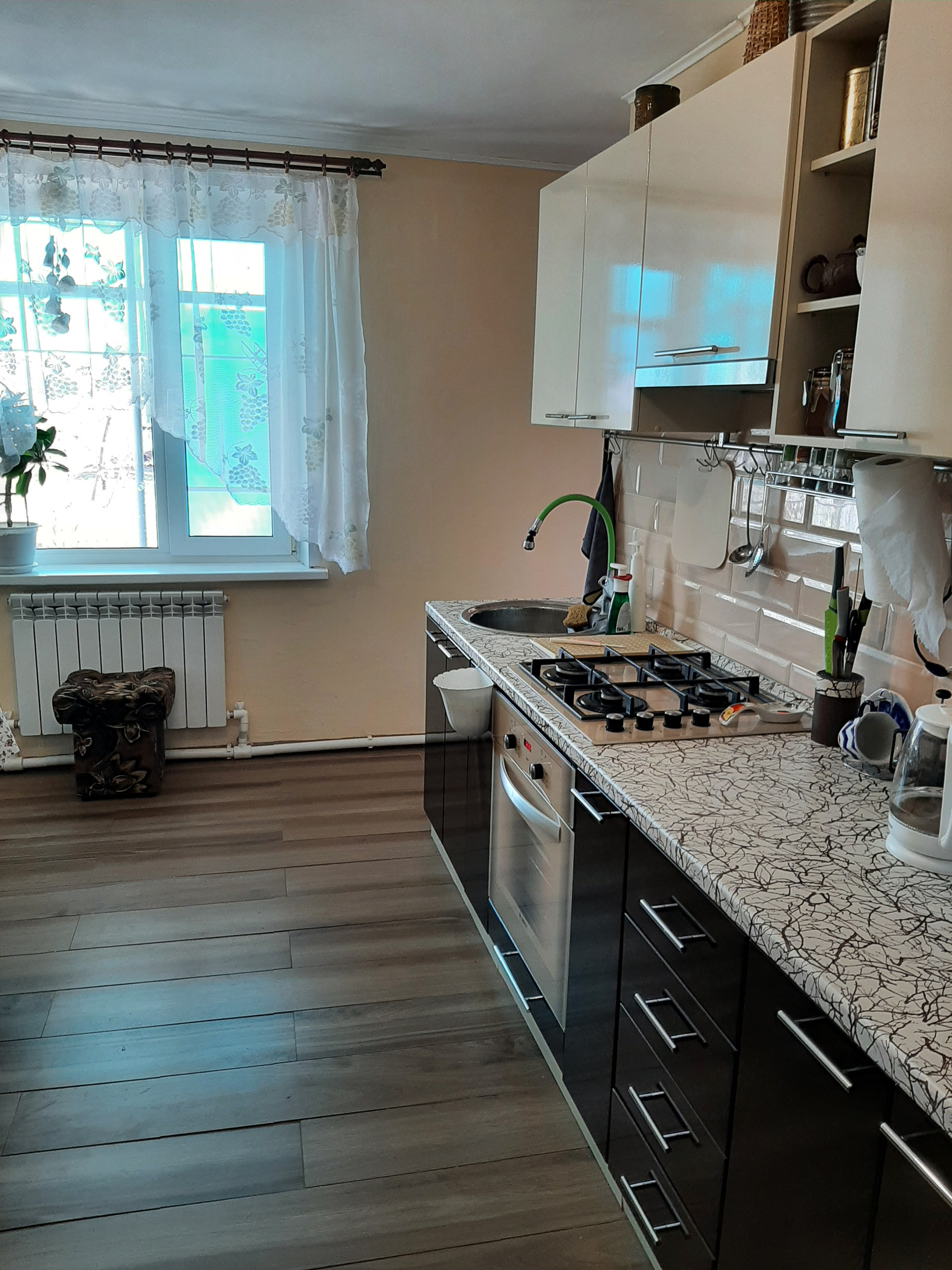 в связи с переездом продается дом в Баскатовке  общей площадью 90,2 кв на земельном участке в 9 соток. В отличном состоянии, не требующий дополнительных вложений. В доме произведен качественный ремонт, установлены трехкамерные стеклопакеты "Rehau", заменена проводка, для нагревательных приборов установлены силовые керамические розетки. Напольное покрытие - ламинат, в кухне и ванной комнате теплый пол, покрытие  керамогранит. В 2023 году установлен новый парапетный газовый котел "Мимакс". Горячее водоснабжение посредством бойлера "Аристон". При продаже остается кухонная мебель, варочная газовая панель "Гефест", электрическая духовка "Гефест", люстры и светильники, стиральная машина "LG", три кондиционера ( кухня, спальня, зал). На участке два гаража. один на две легковые машины оборудован автоматическими воротами, второй на грузовой автомобиль. Имеется погреб.