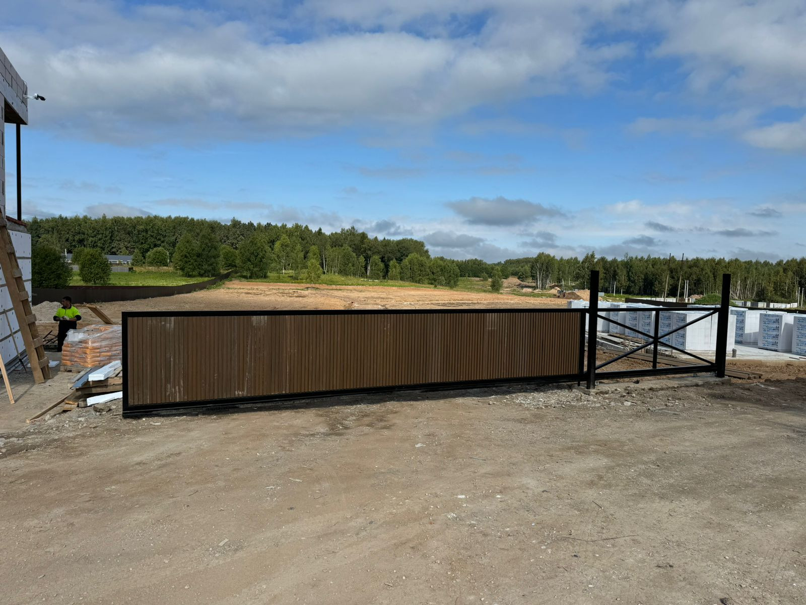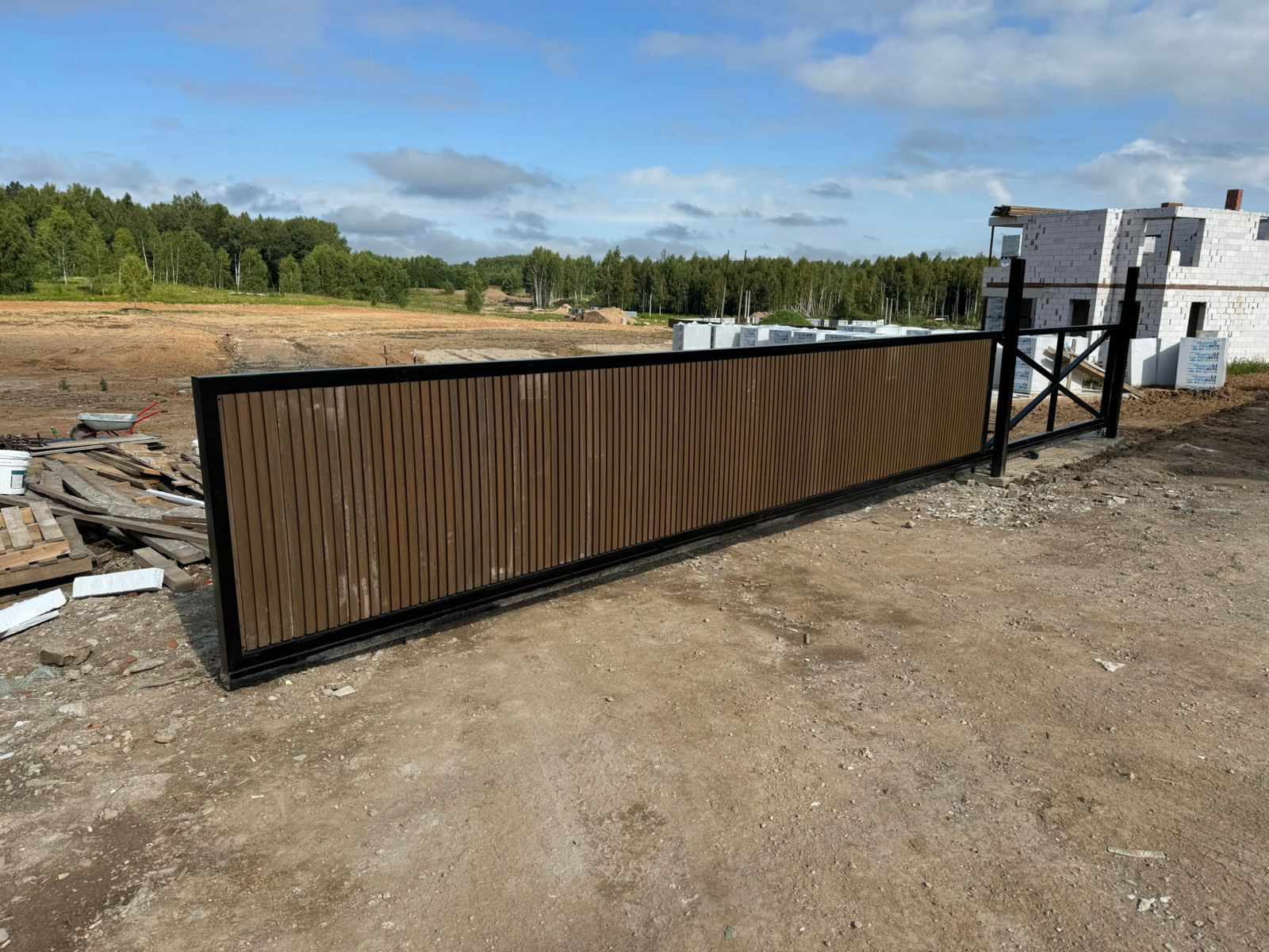 Участок огорожен забором из металлического штакетника, откатные ворота, калитка.