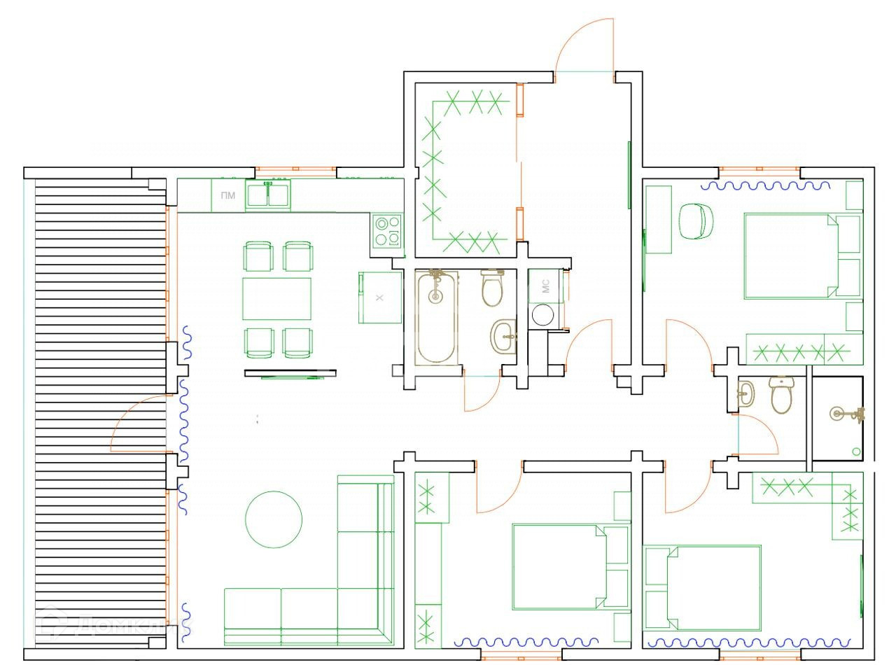 Просторная планировка: внутри дома достаточно места для комфортного проживания всей семьи ( 3 спальни, кухня-гостиная, 2 санузла, прихожая с предусмотренным местом для большой гардеробной и бойлерной),в гостиной установлены панорамные окна высотой 3,5 м!