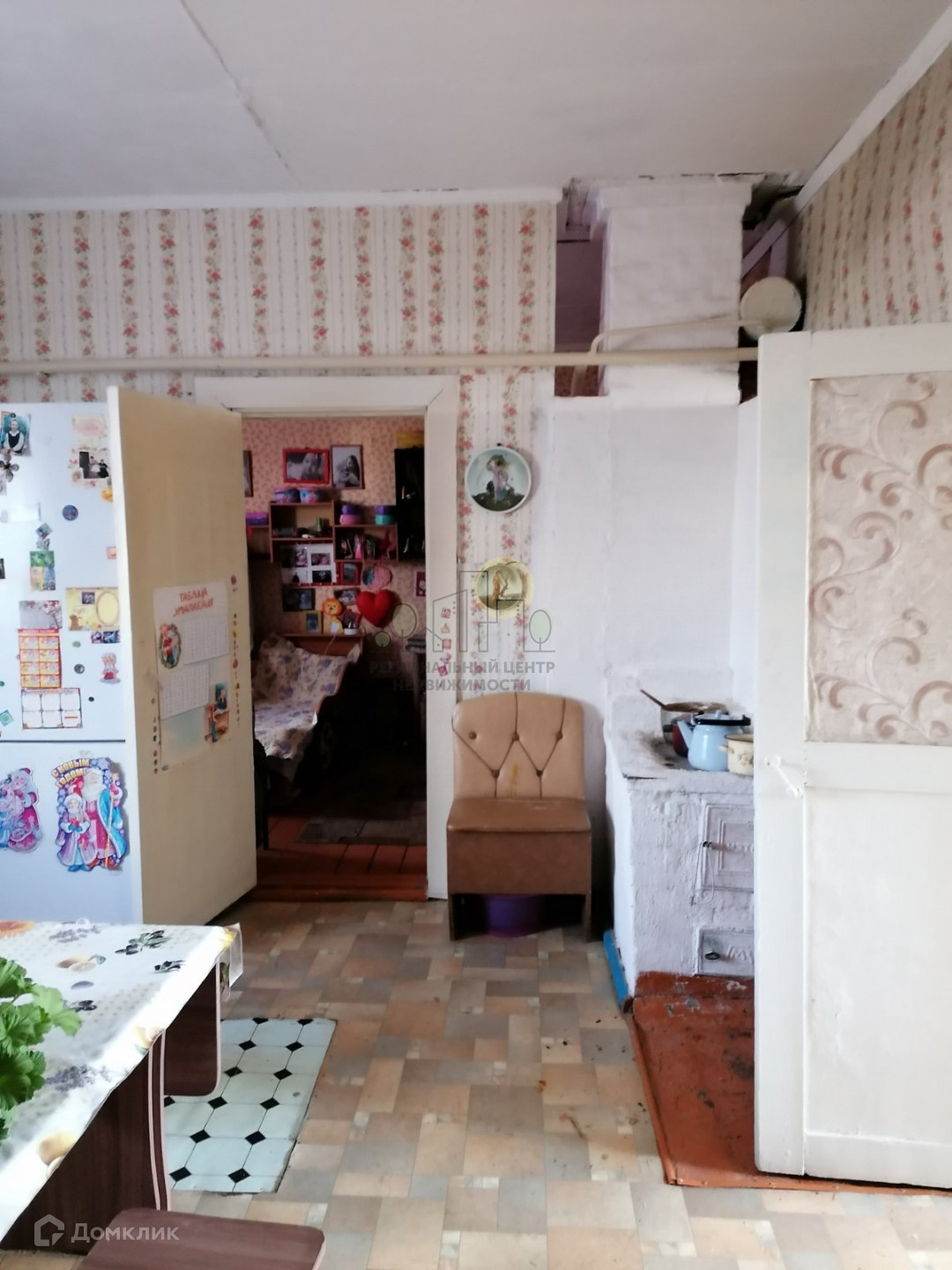 в доме пластиковые окна, деревянная входная дверь, кирпичная печь с бойлерным отоплением, топится один раз в день, везде на полу линолеум, производился косметический ремонт, хороший подвал