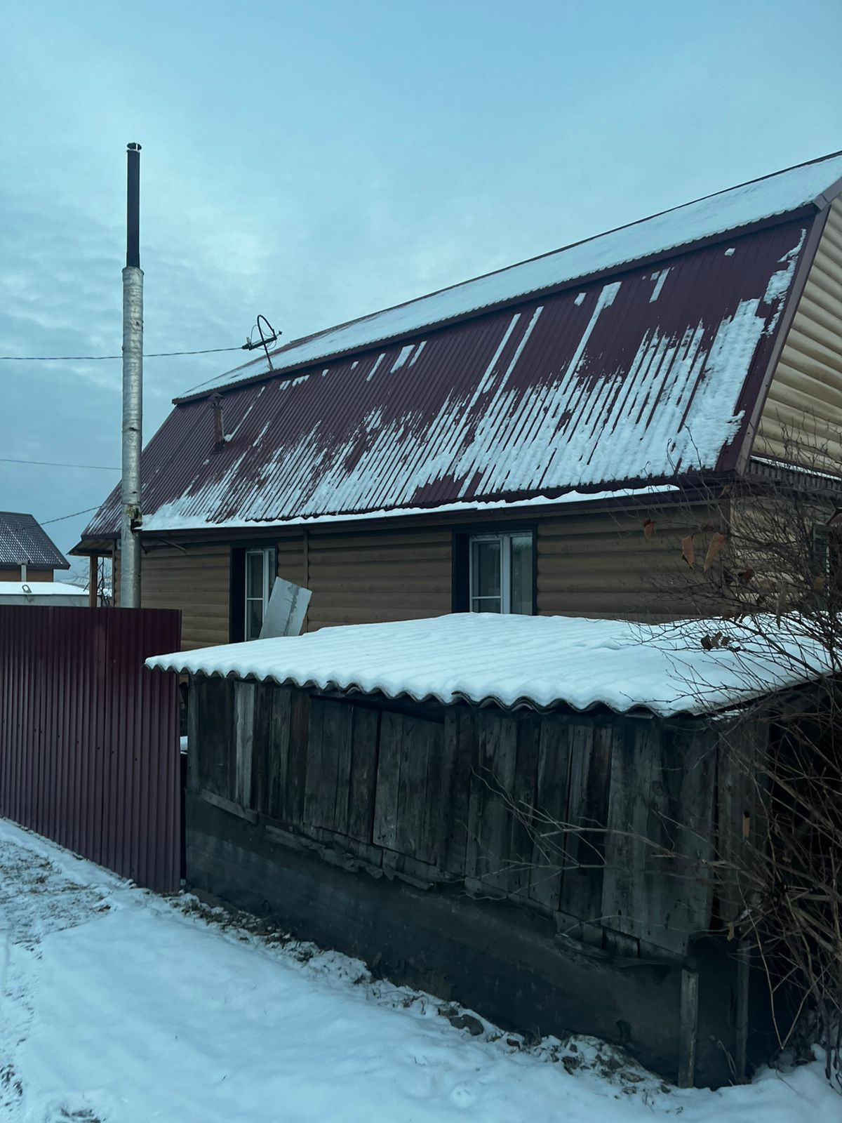 На участке имеется: углярка, металлический гараж 4*7.5 м, баня - сруб 4*4 м, из цельного бревна 20*24, крыша профлист.