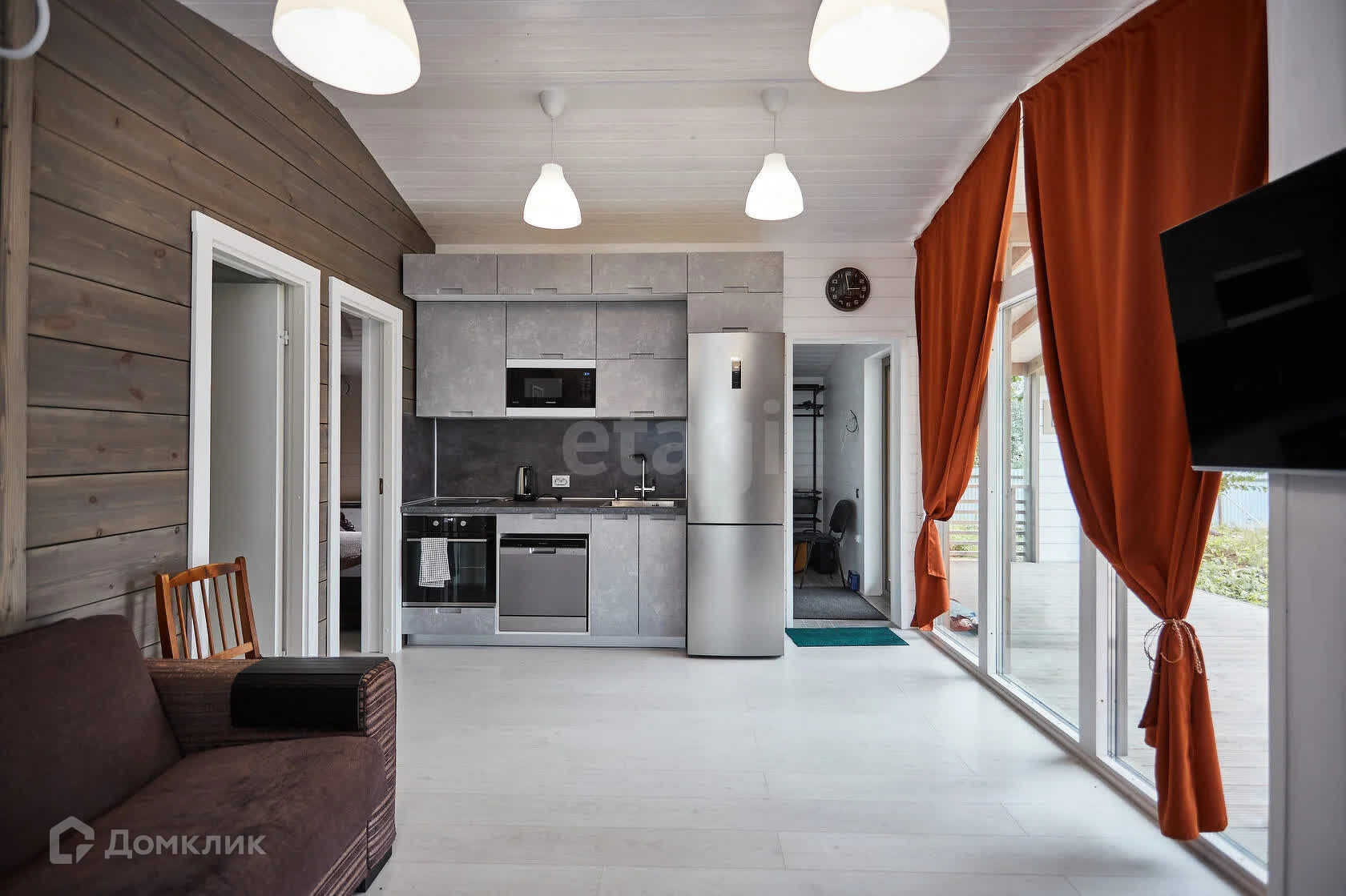 Дом выполнен с использованием качественных материалов: каркас из массива хвойных пород дерева, утепленные стены, а внутренняя отделка выполнена в стильной имитации бруса, вагонка что создаёт атмосферу тепла и уюта.