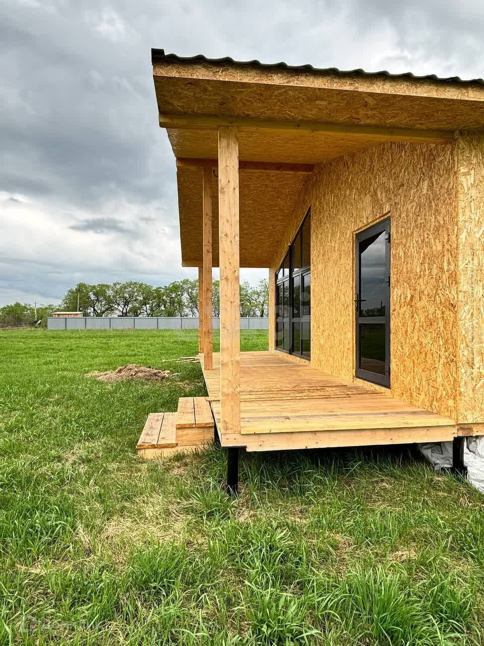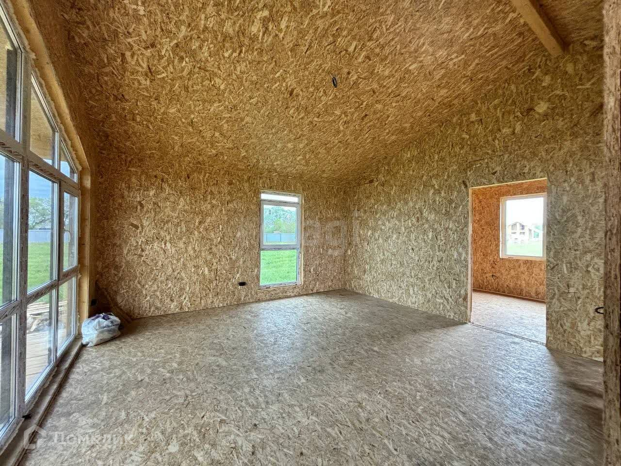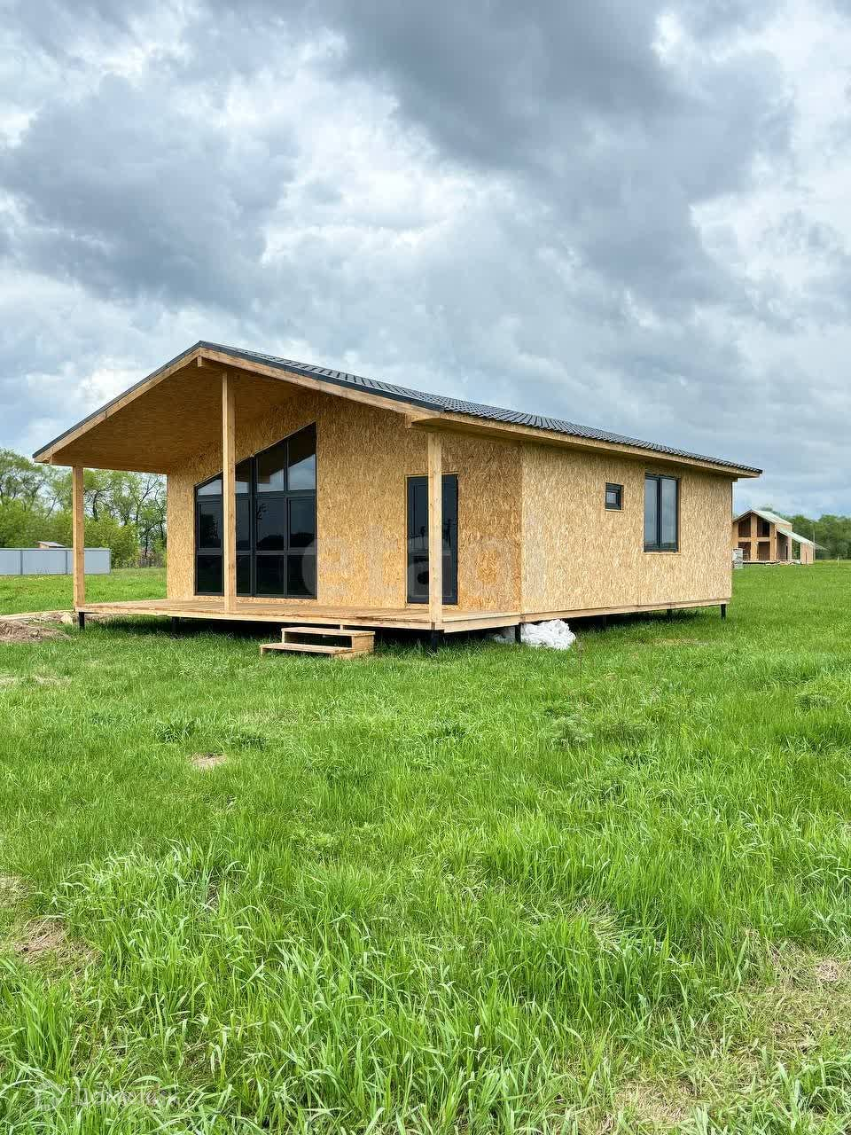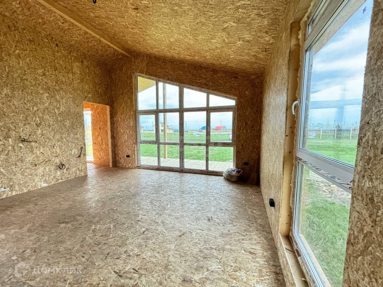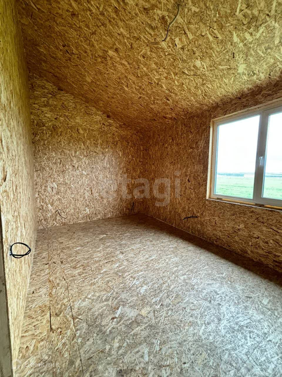 Дом каркасный, современный, очень теплый. Внутри и снаружи обшит ОСБ плитой, утеплен, на крыше металлочерепица. По дому выполнена разводка электричества и сантехники. Установлены современные витражные окна (ПВХ).