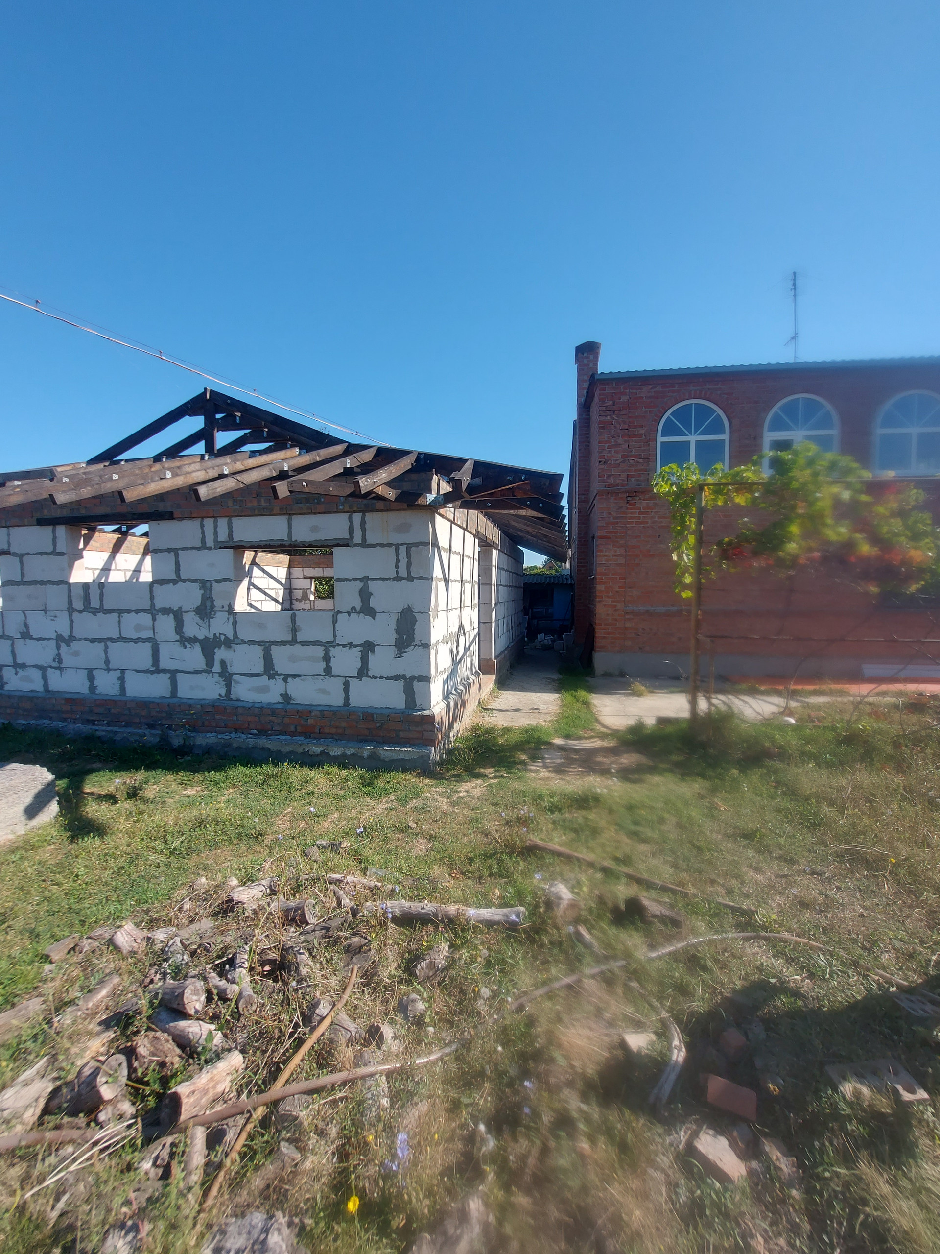 Во дворе имеется недостроенное помещение - 60 кв. м.,  сарай - 19 кв. м, навес.