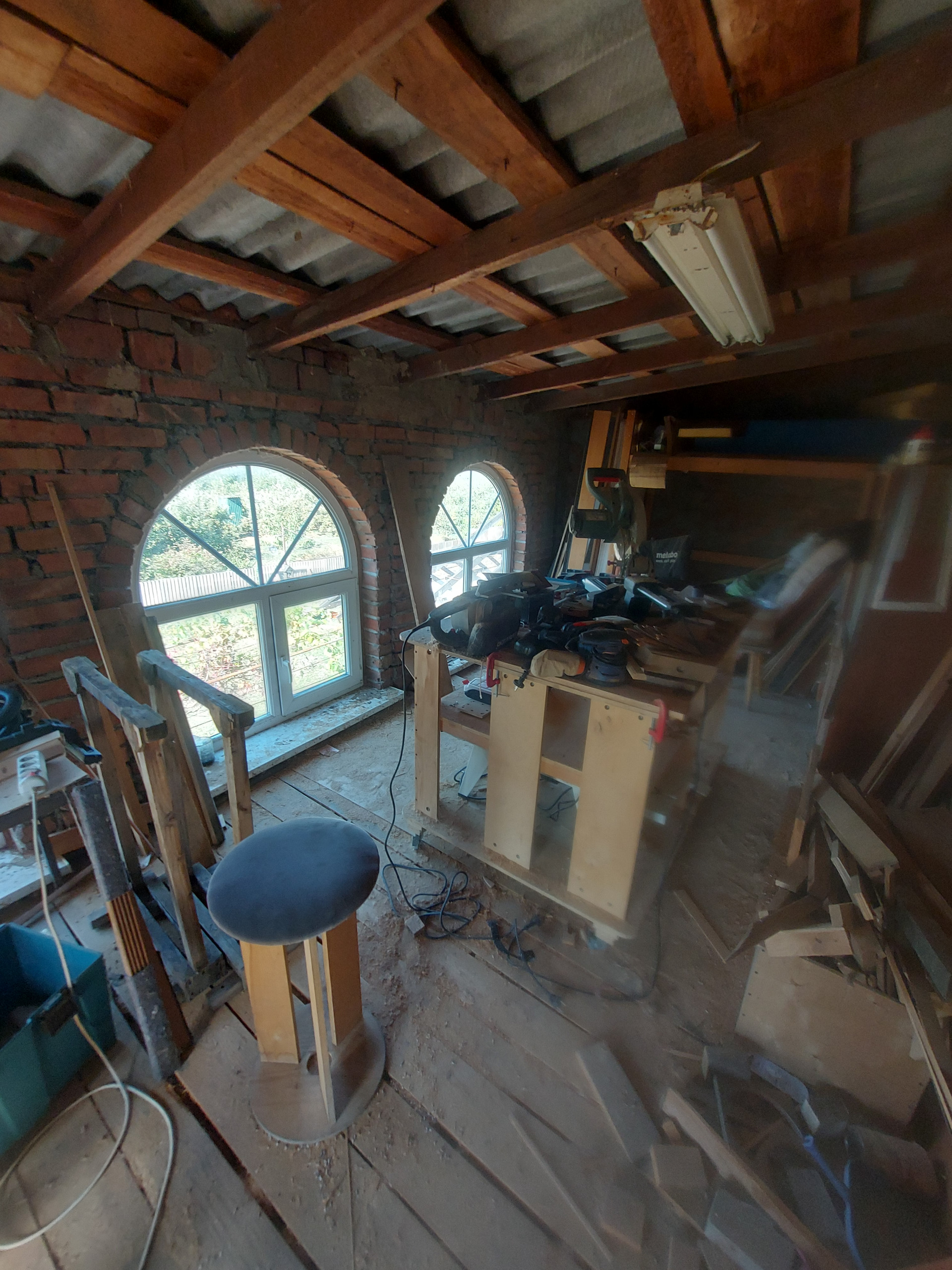 На 2 этаже; 3 раздельные комнаты, мастерская.