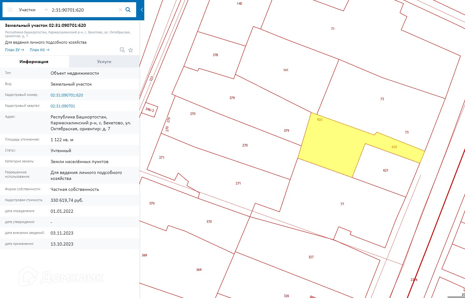Кадастровый номер 02:31:090701:620.