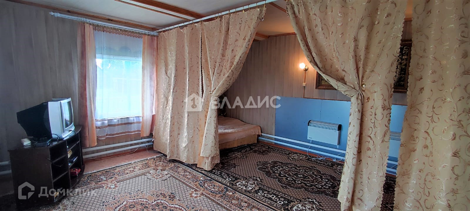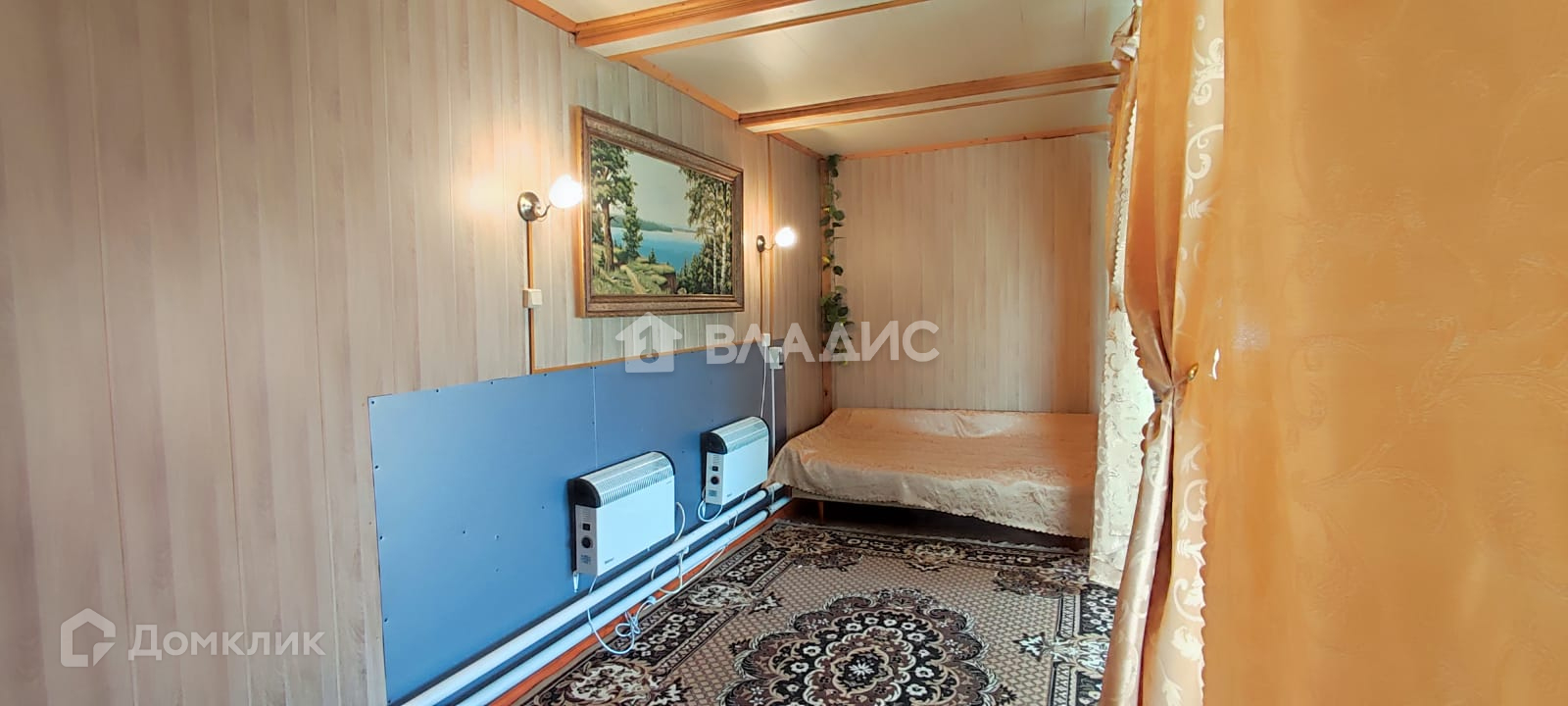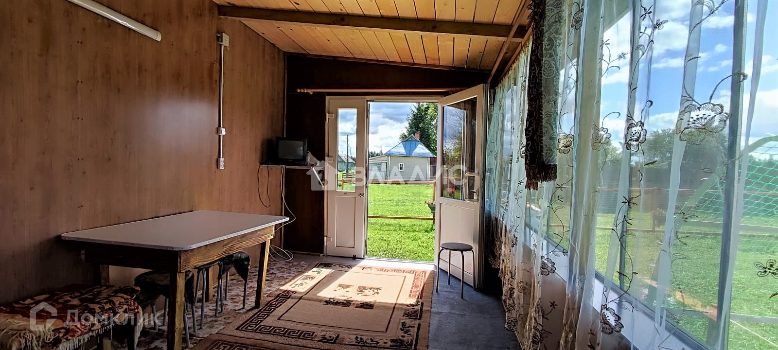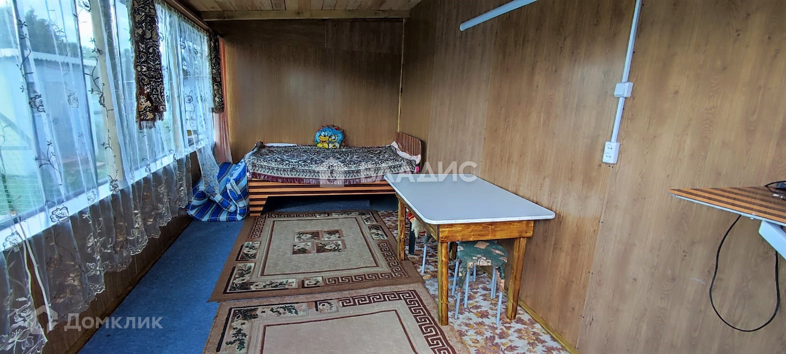 Дом рубленный (елка), отделан улица - пластик, внутри - отделочный оргалит, полы доска елка 500 мм.