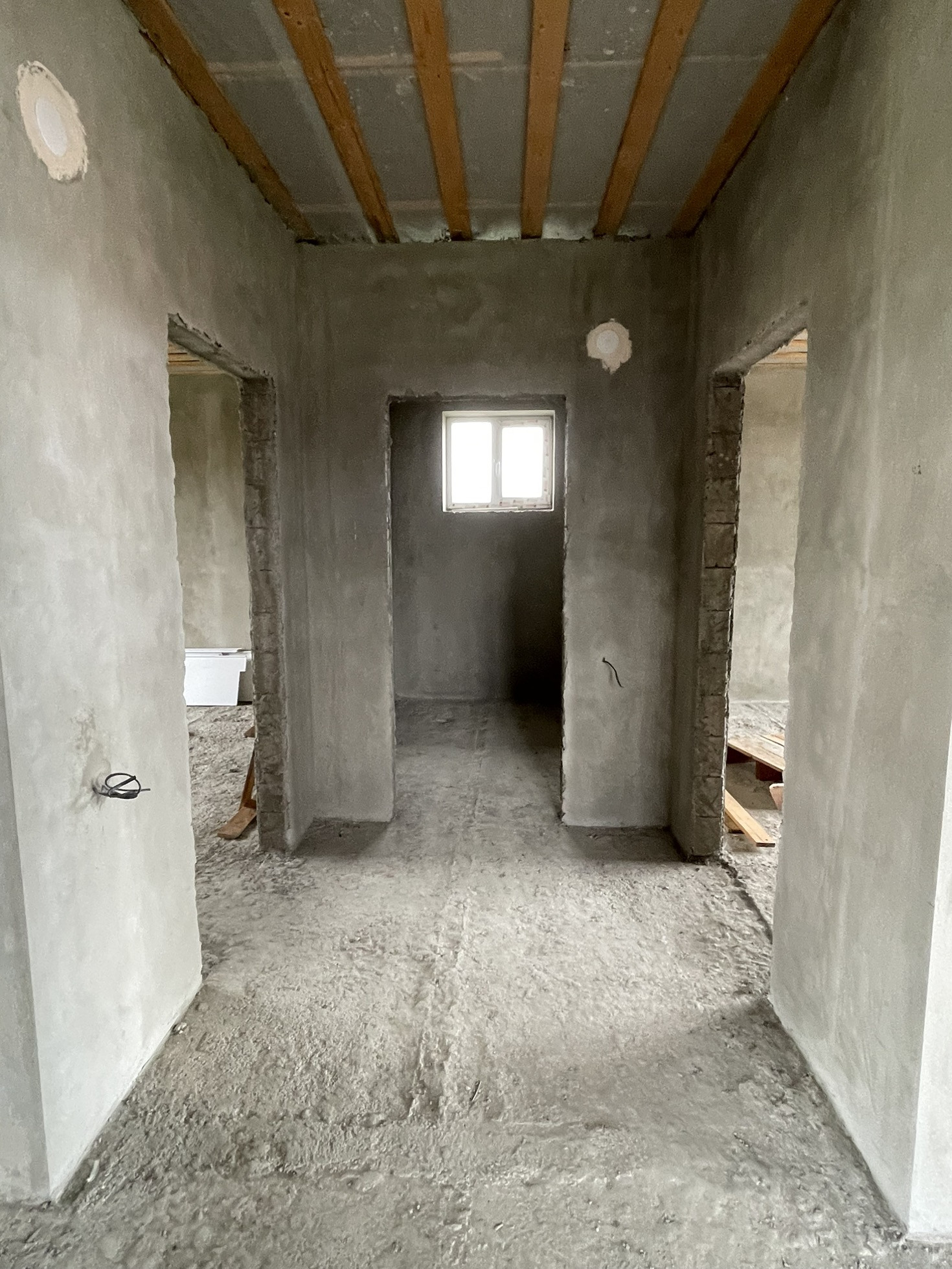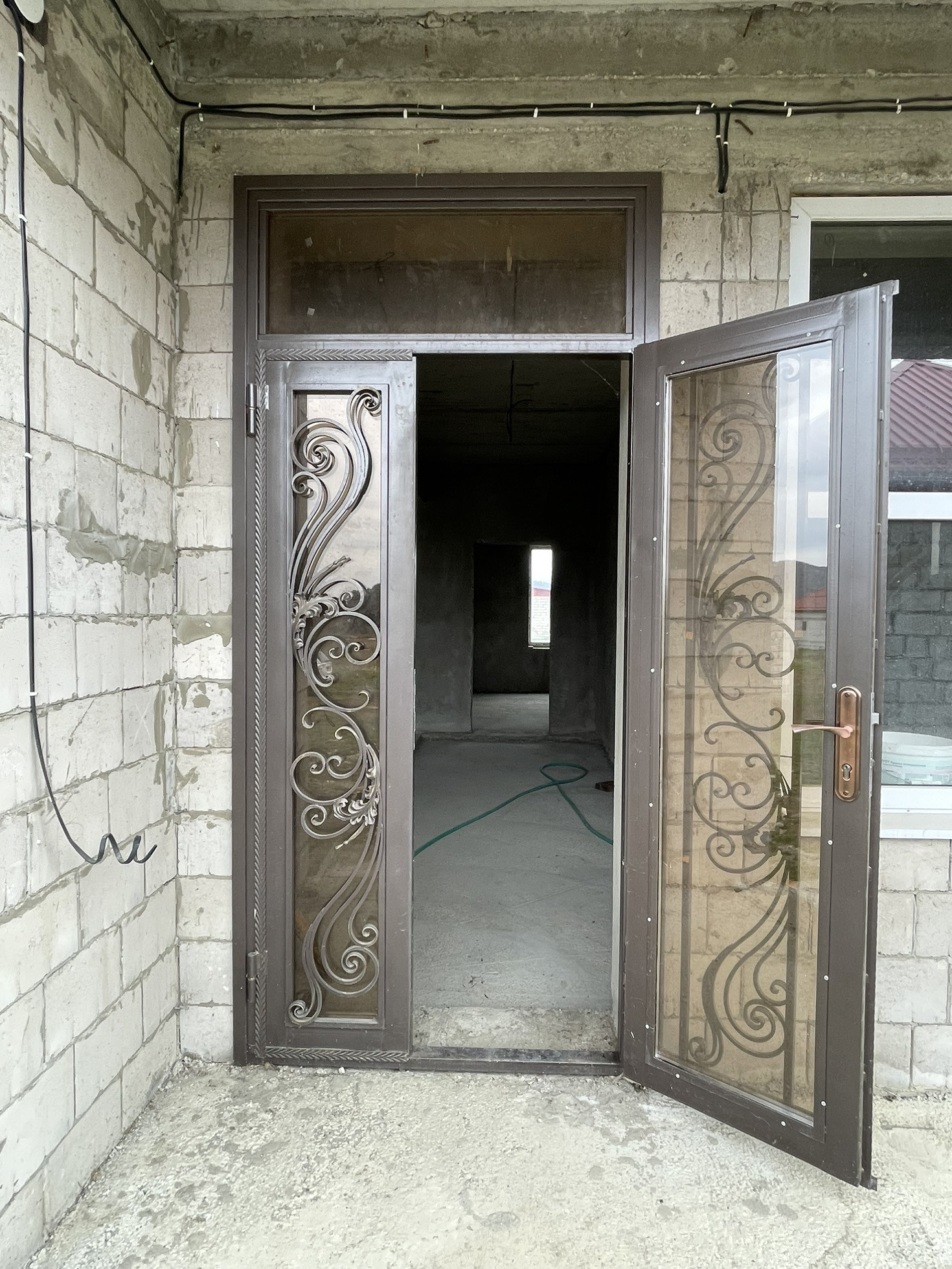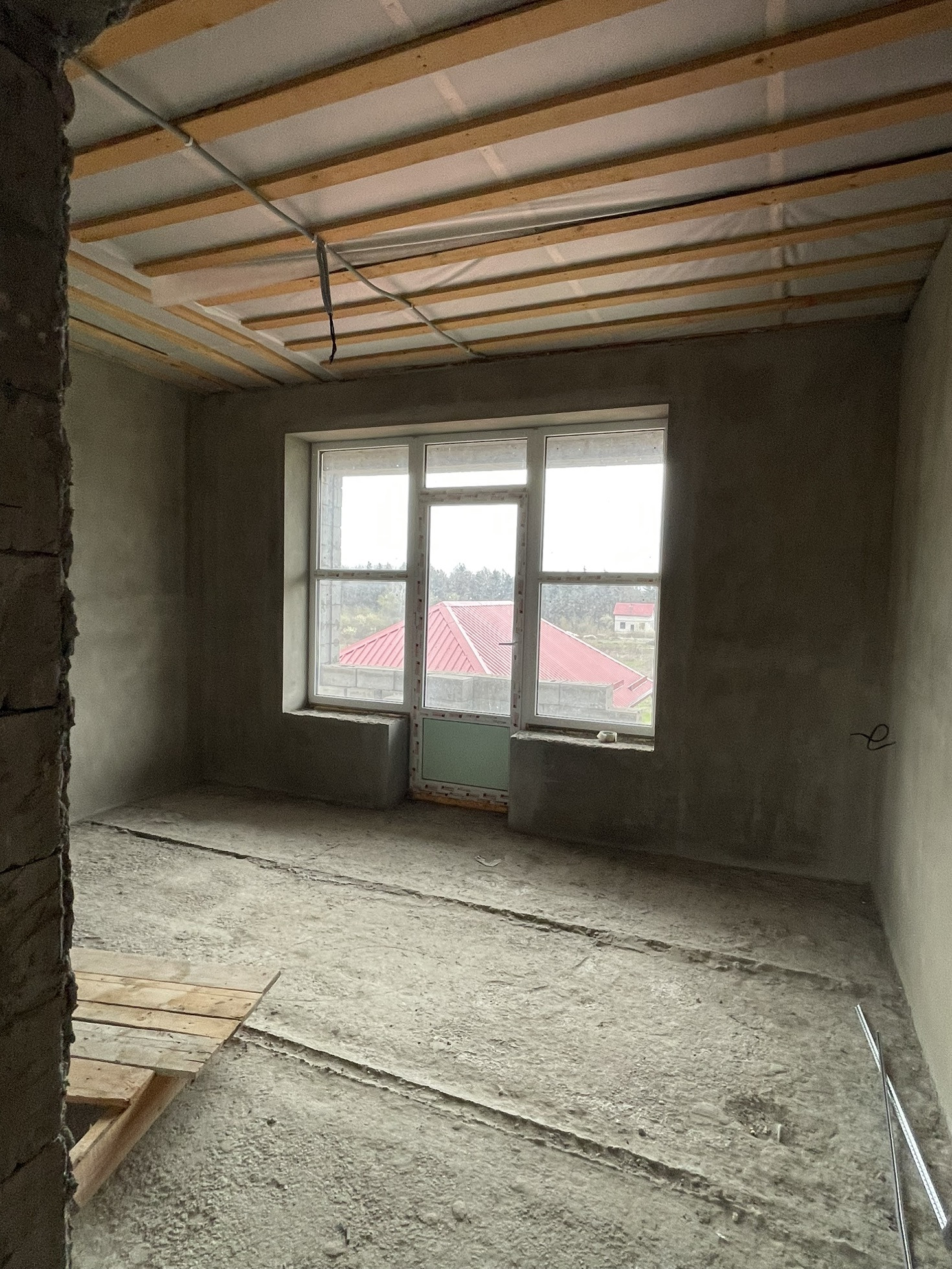 Внутри сделана штукатурка, электроразводка, окна пластиковые качественные, крыша, железная входная дверь.