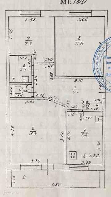 Общая площадь 56.4 м2