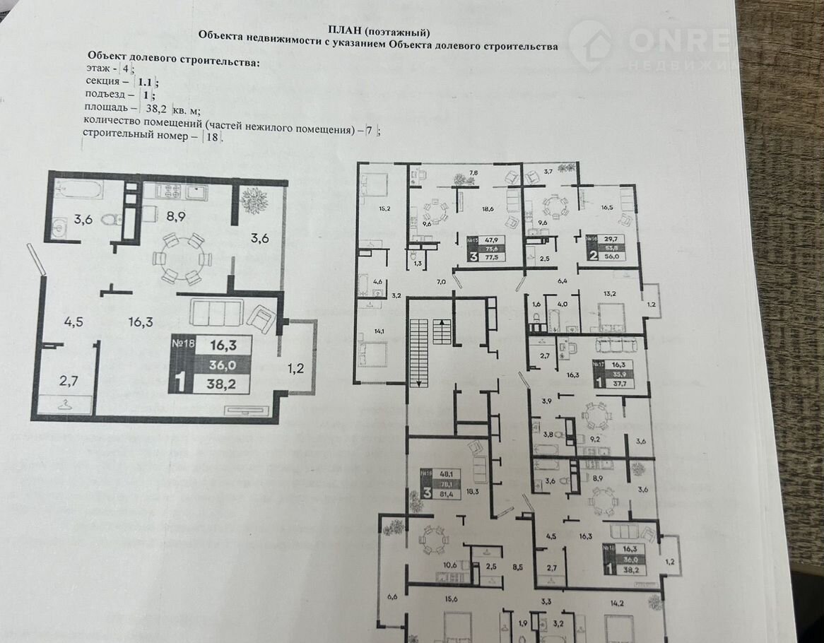 Общая площадь 38.2 м2
