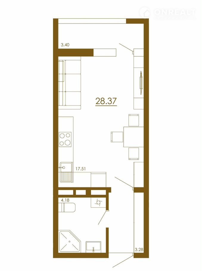 Общая площадь 28.4 м2