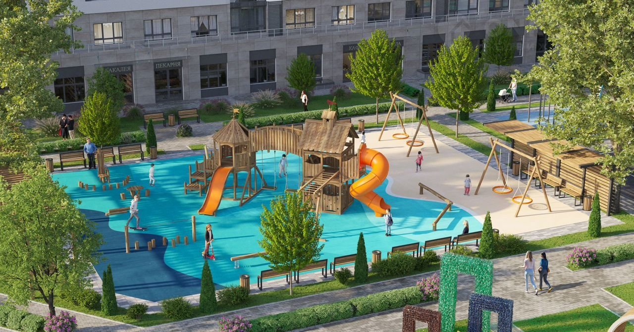 Жилыe корпуca сфоpмируют закрытое внутреннее охраняемое пространство со своей инфраструктурой.