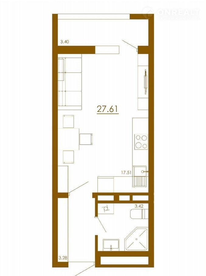 Общая площадь 27.6 м2