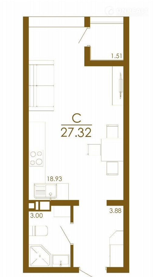 Общая площадь 26.6 м2