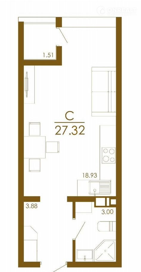 Общая площадь 26.6 м2