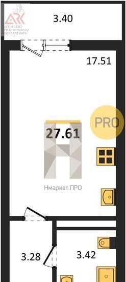 Общая площадь 27.6 м2