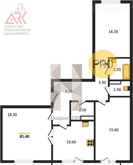 Общая площадь 81.4 м2