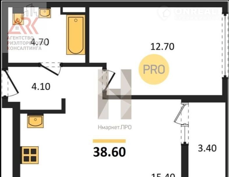 Общая площадь 38.6 м2