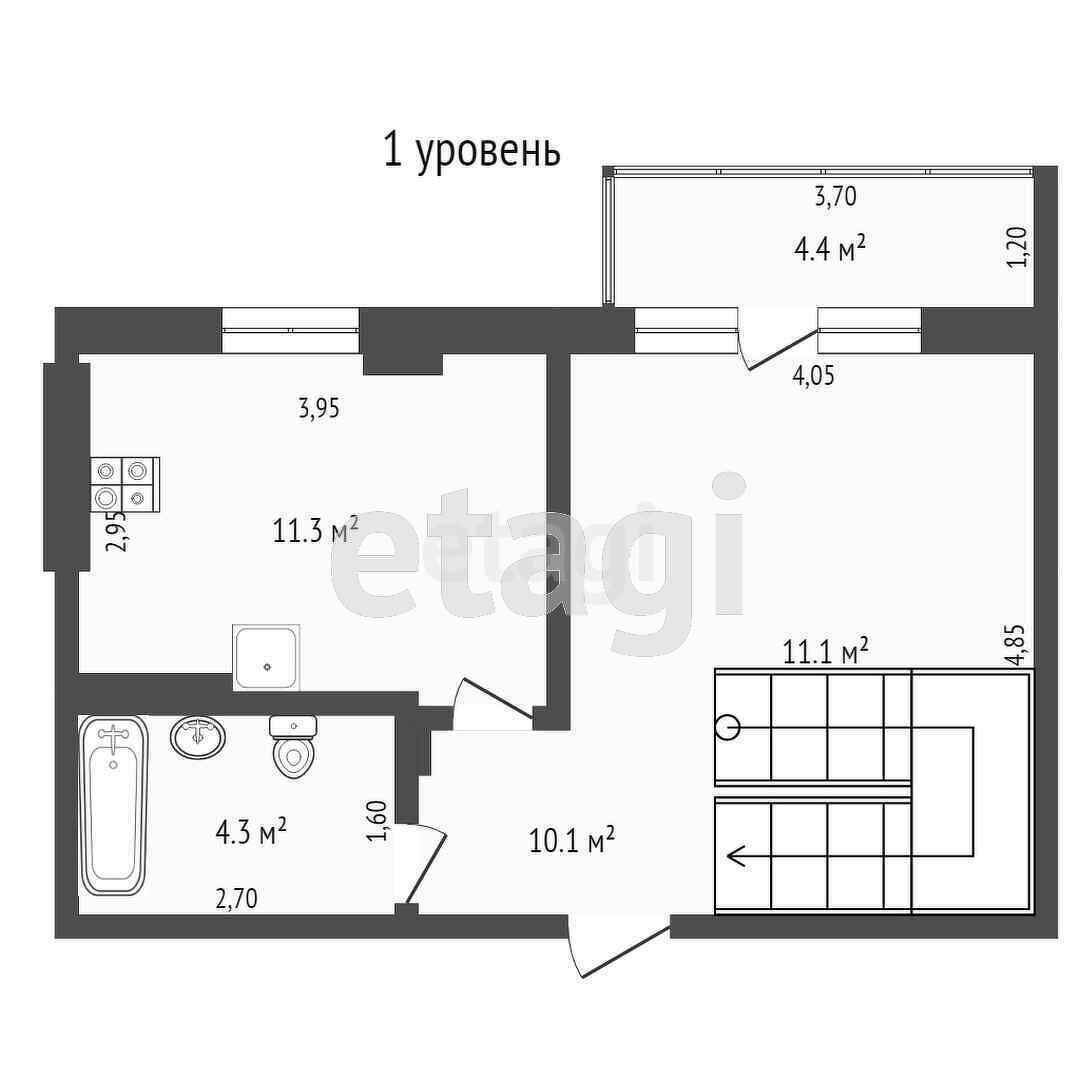 Общая площадь 54.3 м2