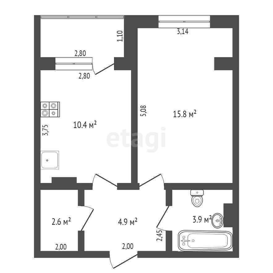 Площадь кухни 10.4 м2