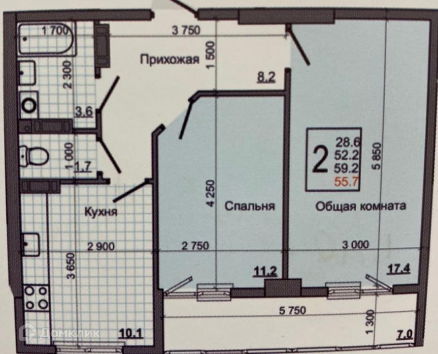 Общая площадь 60 м2