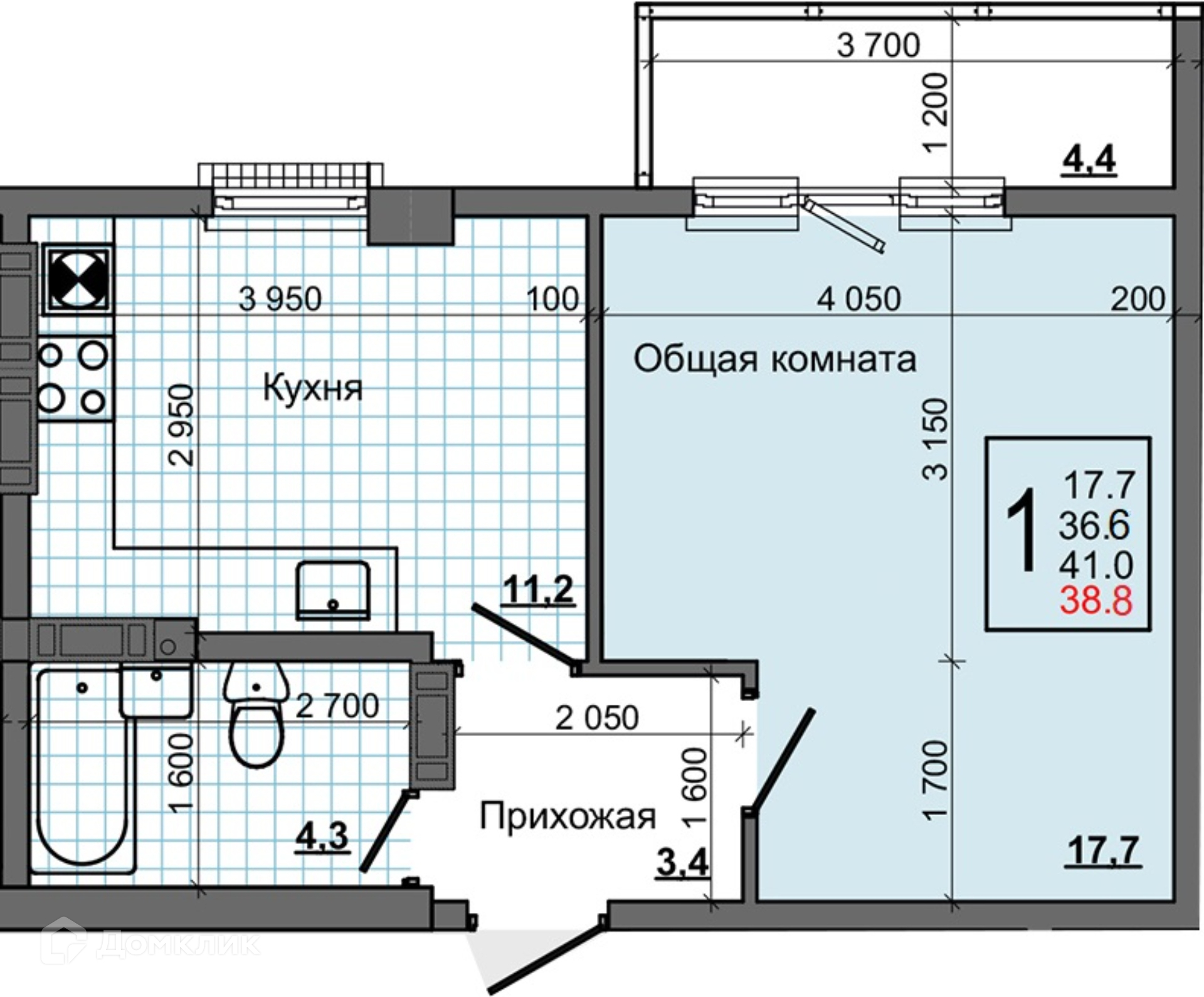 Общая площадь 41 м2