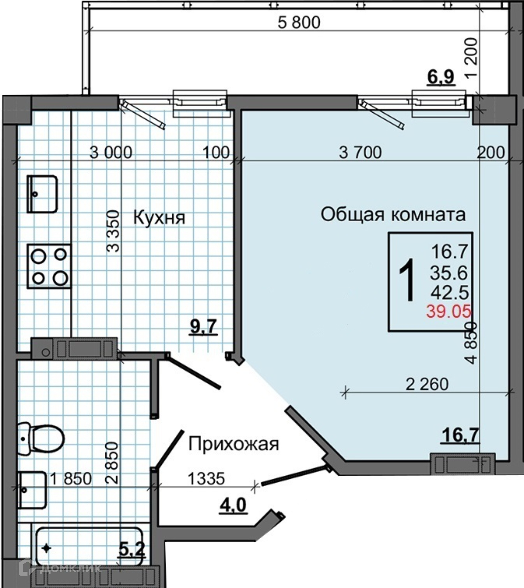 Общая площадь 41 м2
