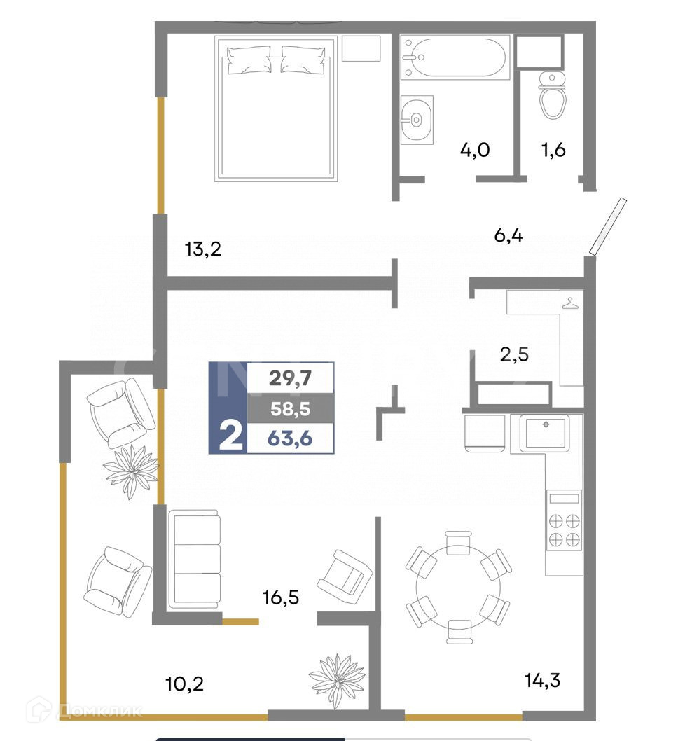Общая площадь 63.6 м2