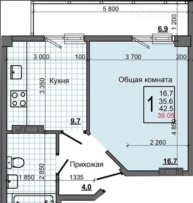 Балкон, лоджия 1 лоджия