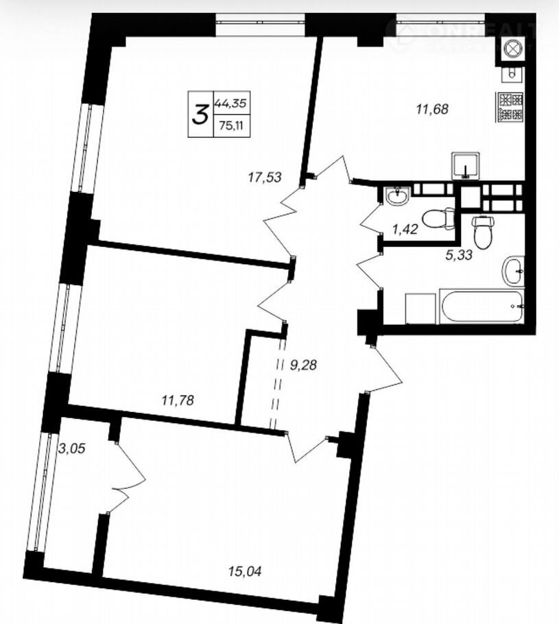 Общая площадь 75.1 м2