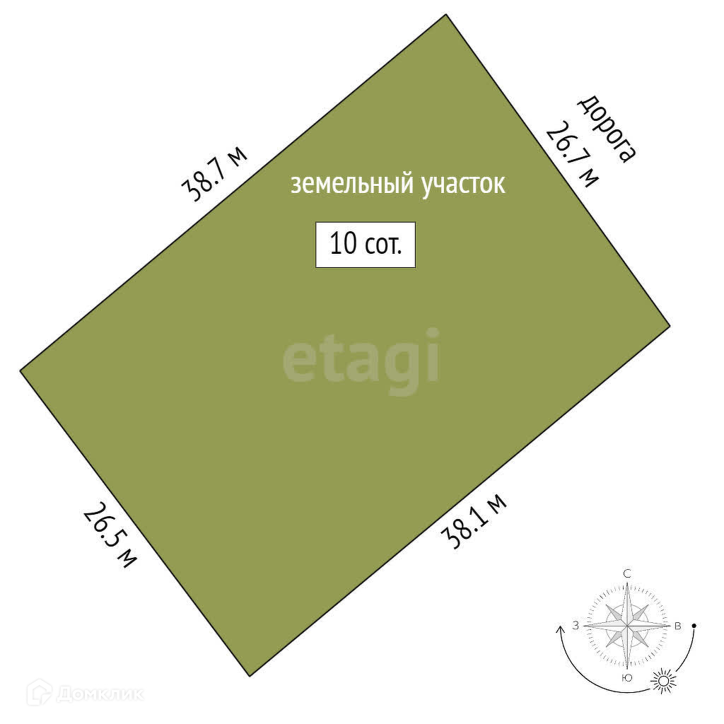 Площадь участка - 10 соток, идеально подходит для строительства вашего загородного дома. Ровный и прямоугольной формы, он станет прекрасным местом для создания вашего собственного уютного уголка.
