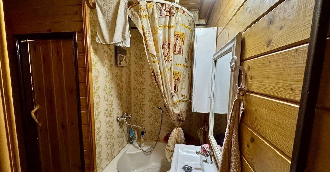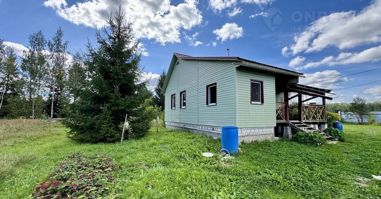 Дом 43 м², построен в 2013 году. Сруб, обшит сайдингом, стоит на кирпичном фундаменте. Есть терраса, где летом приятно пить чай или встречать гостей. Отопление печное, вода центральная — всё работает.