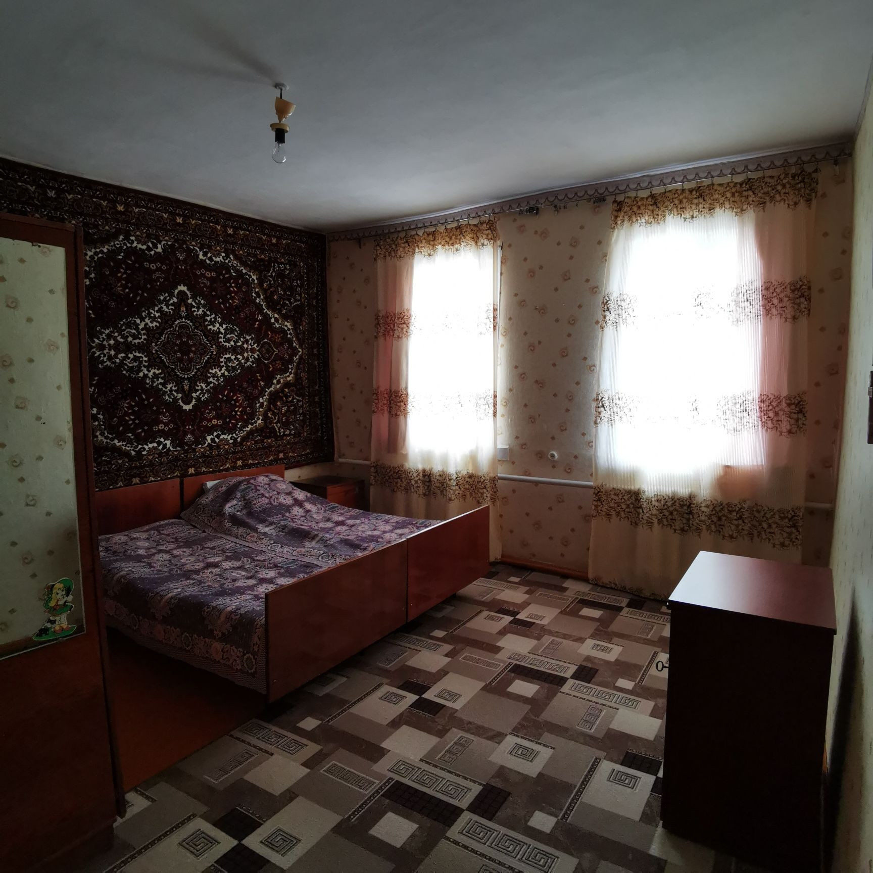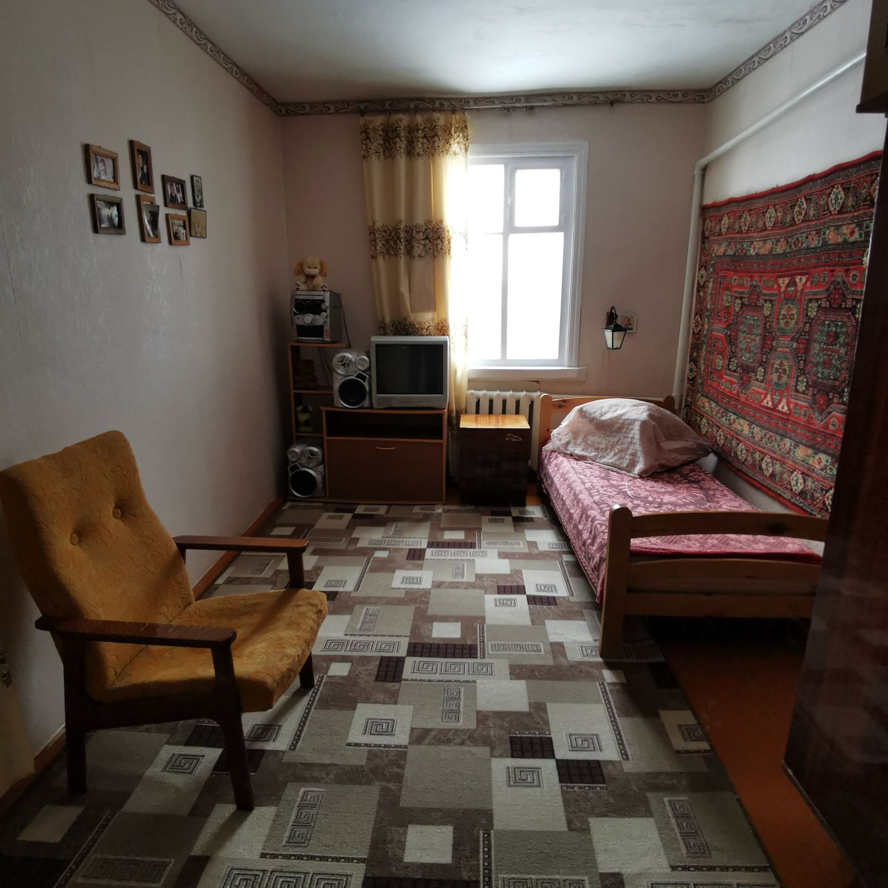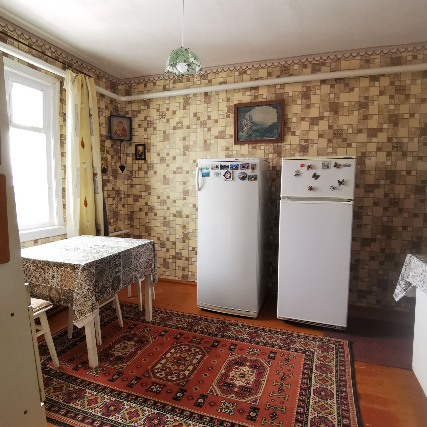 Продаётся деревянный дом построенный из дуба, площадью 107.6 метров квадратных. В доме имеются все коммуникации: газовое отопление, вода, ванна, туалет, две огромные канализации, интернет, телефон. Четыре жилых комнаты и большая кухня. На территории имеется гараж, второй маленький дом из двух комнат, сараи, подал. Также имеется подвал для солений в доме. Ухоженный огород, виноградник и  сад. Во дворе имется скважина.
