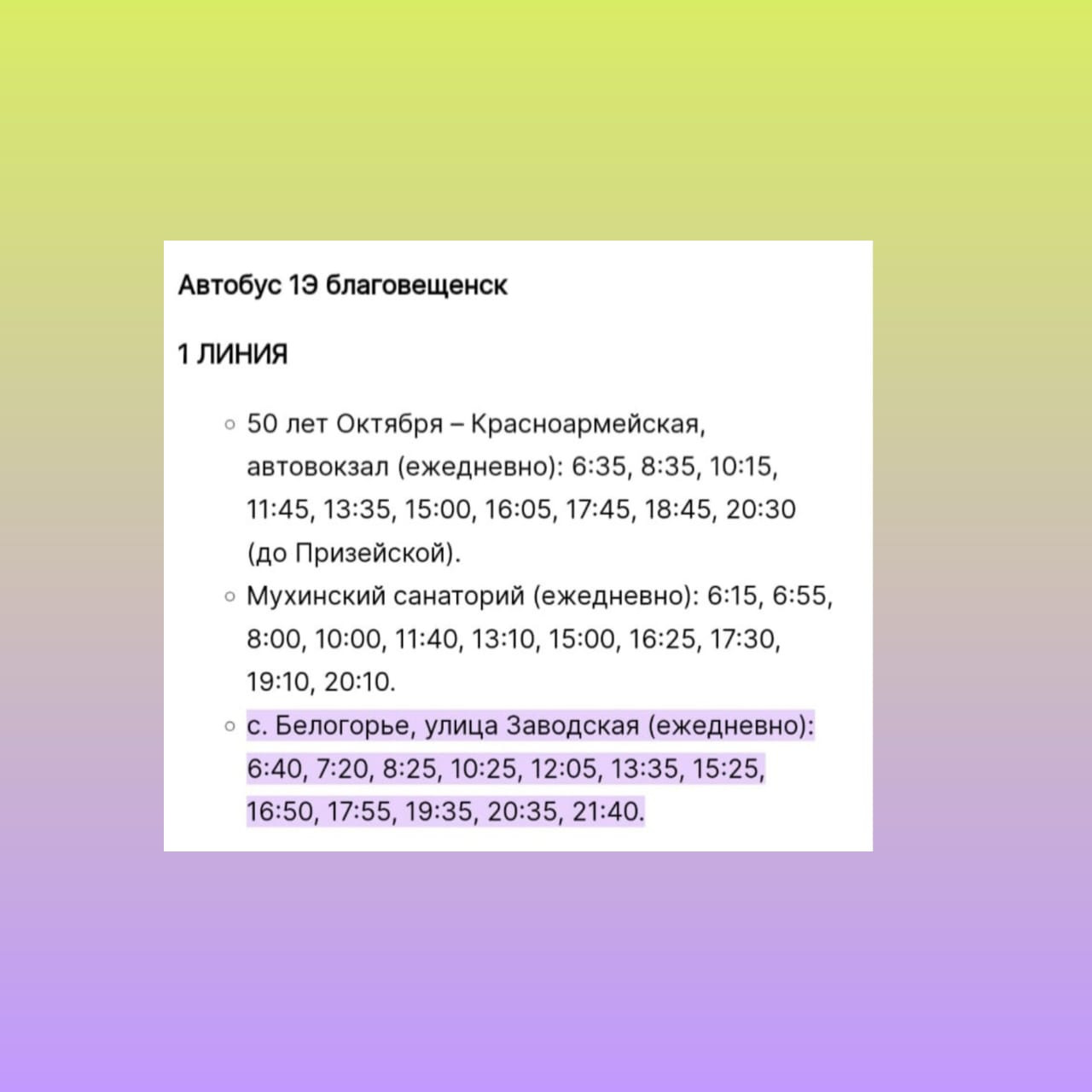 Автобус ходит каждый час (расписание есть в загруженных фото).