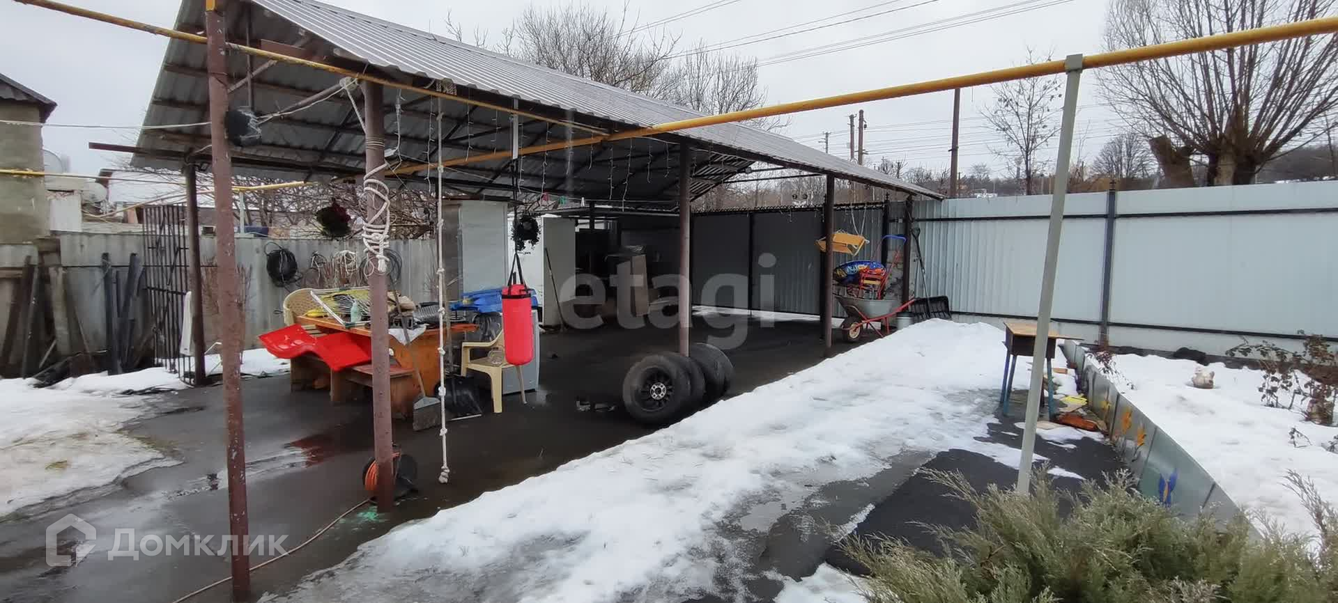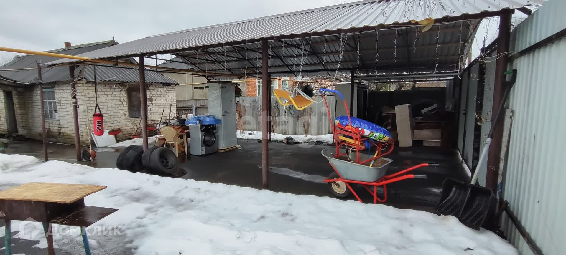 Так же на участке имеется большой навес для автомобиля, свежая хоз постройка с помещением под мастерскую или вещи и большим погребом. Двор заасфальтирован. Есть плодовые деревья