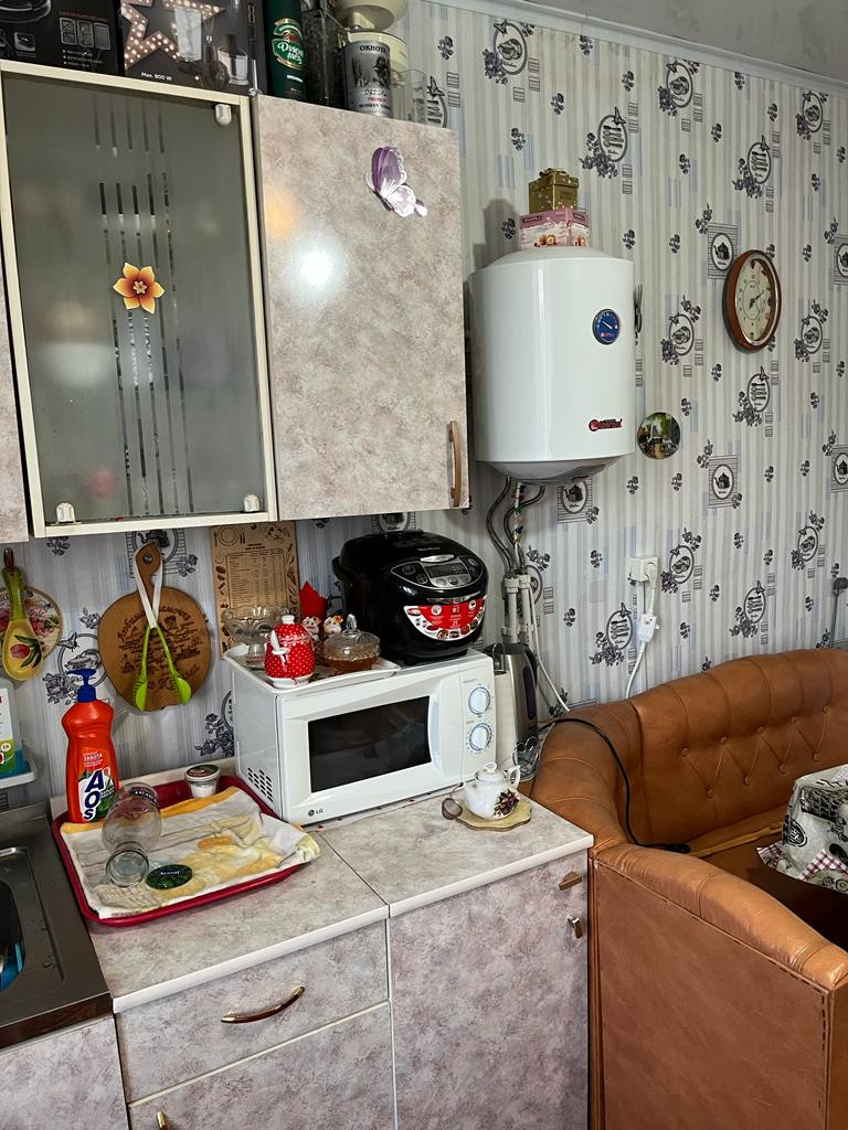 Большая кухня, 11 м, газовый котел, центральная вода.Остается частично мебель, кухонный гарнитур, холодильник, стиральная машина.
