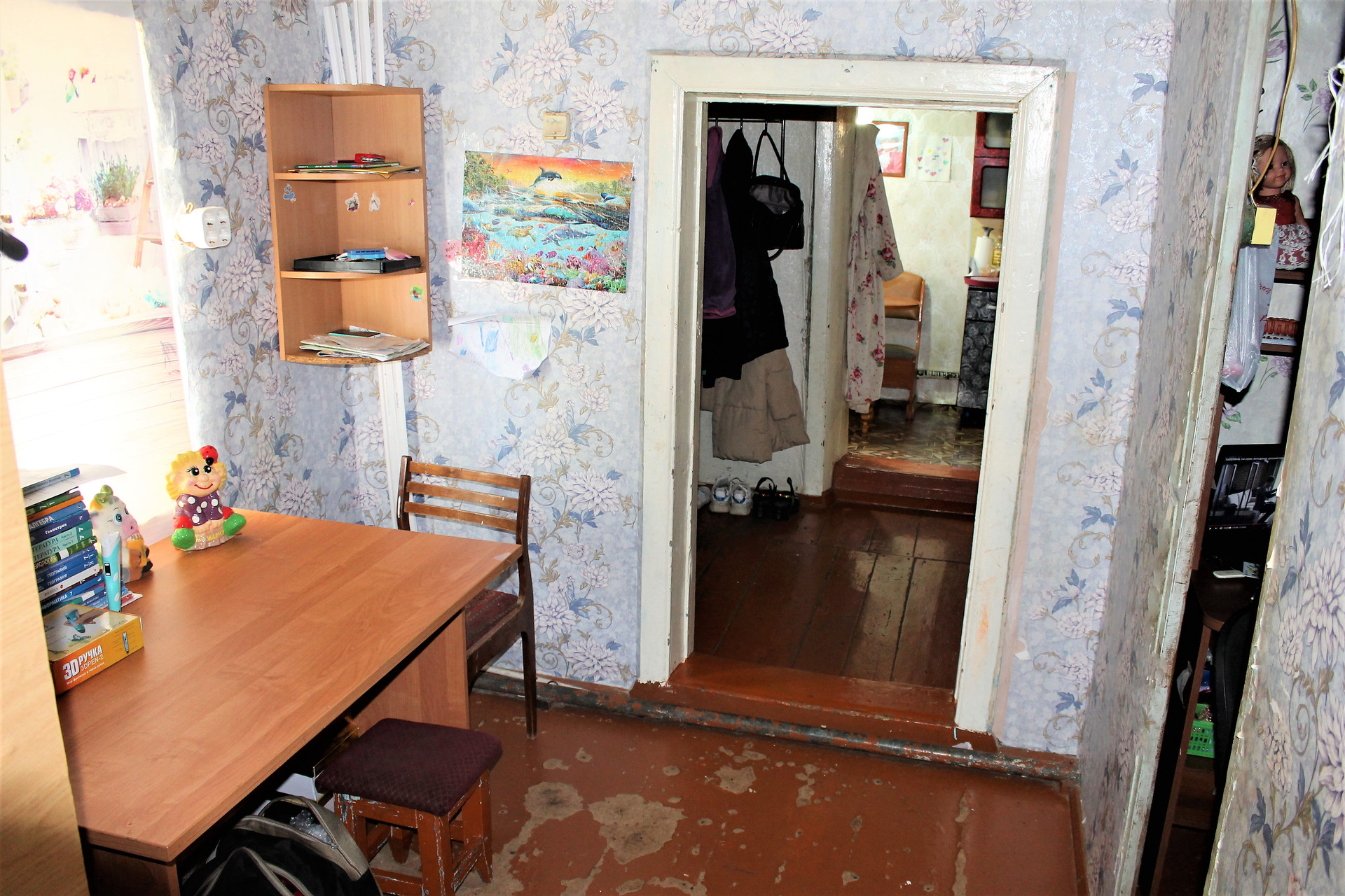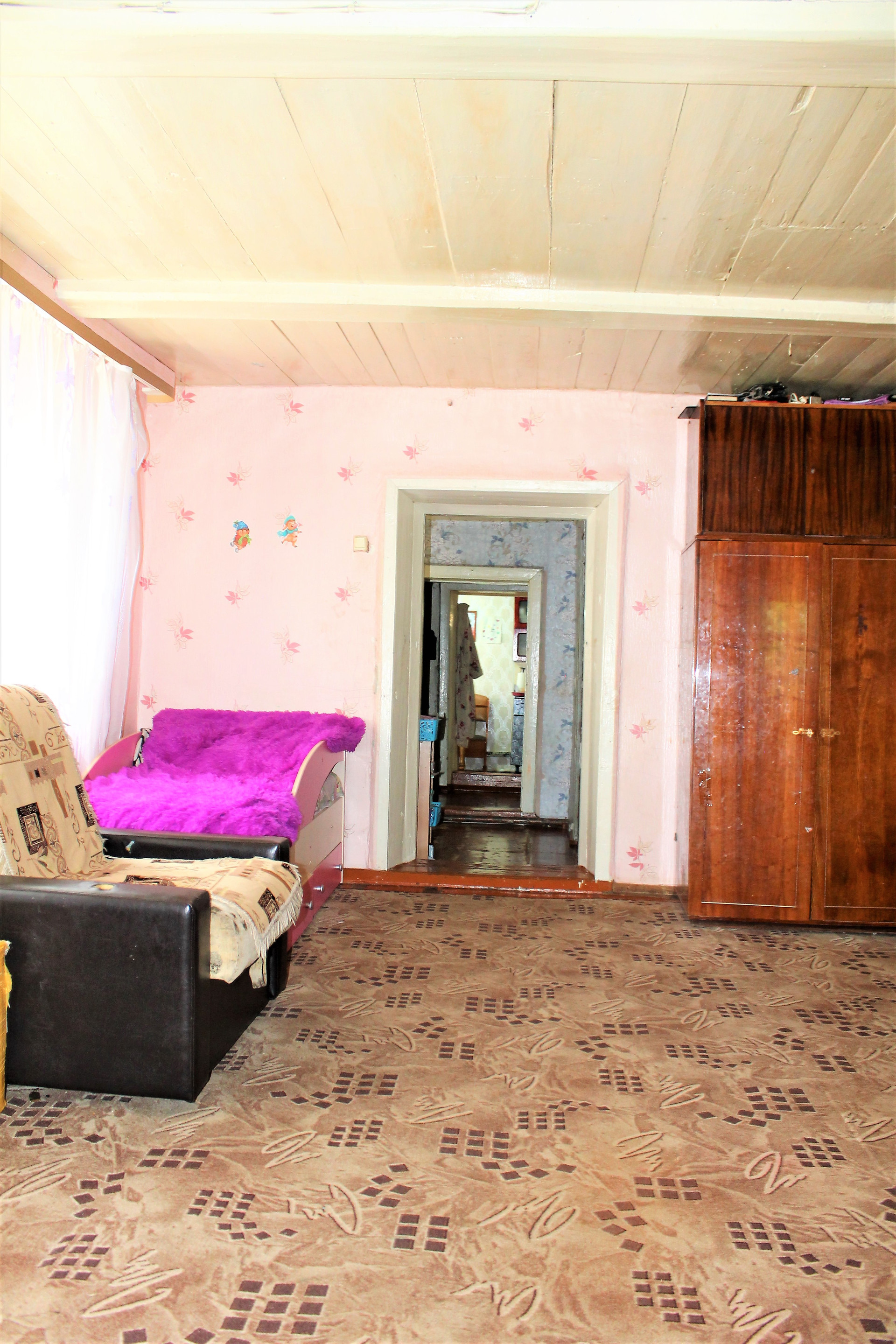 Дом деревянный (год постройки 1959), площадью 42,6 кв.м. (две спальни, кухня). Дом расположен в центре поселка – все в шаговой доступности.
