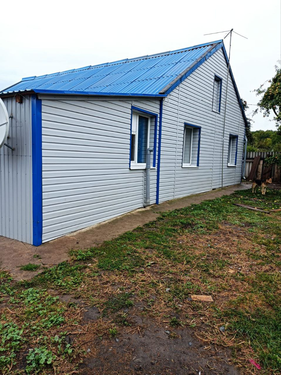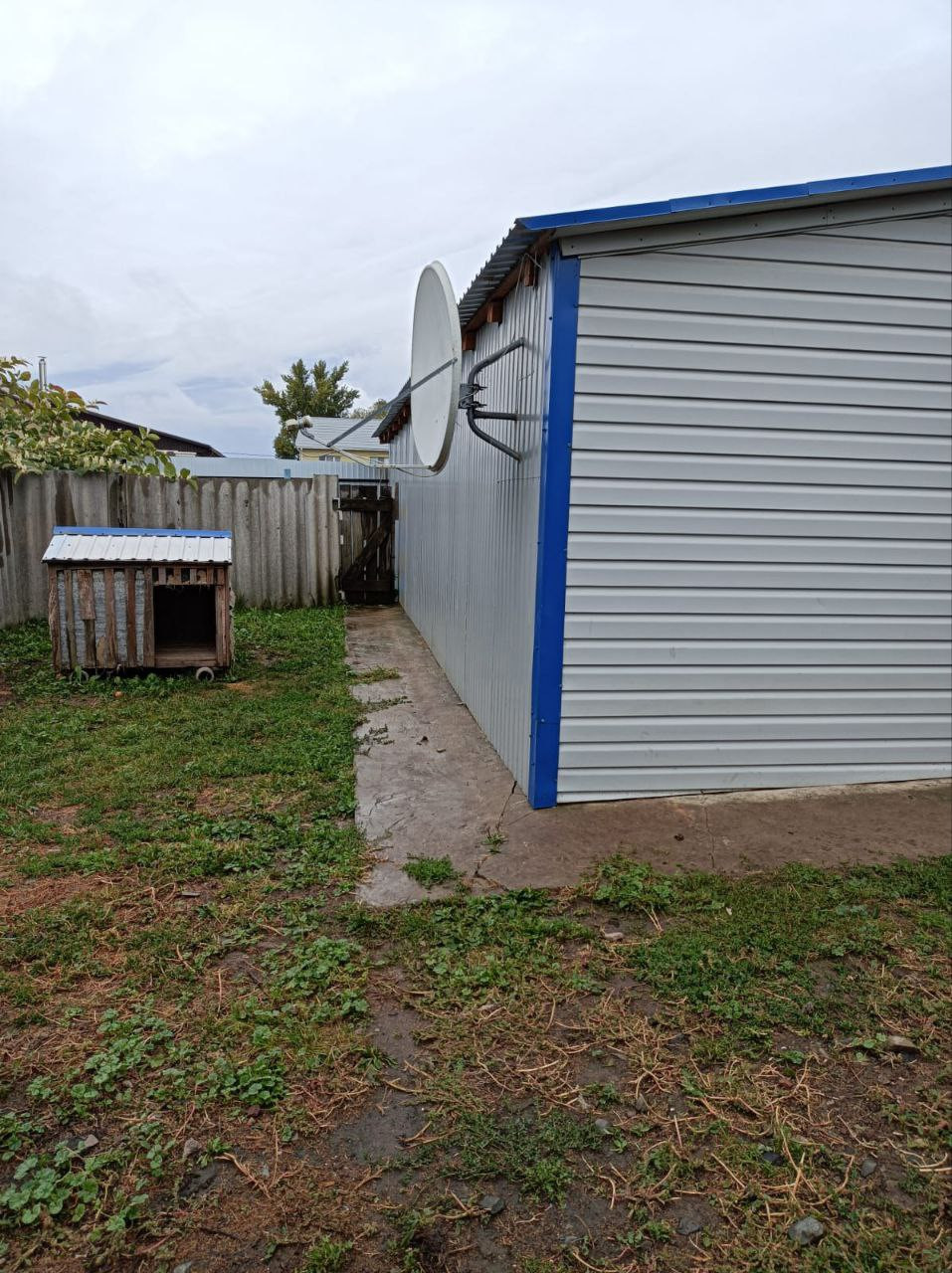 Большая территория вокруг дома, сейчас   используется как вольер для собачек. но можно использовать и для пристроек к дому новых комнат.