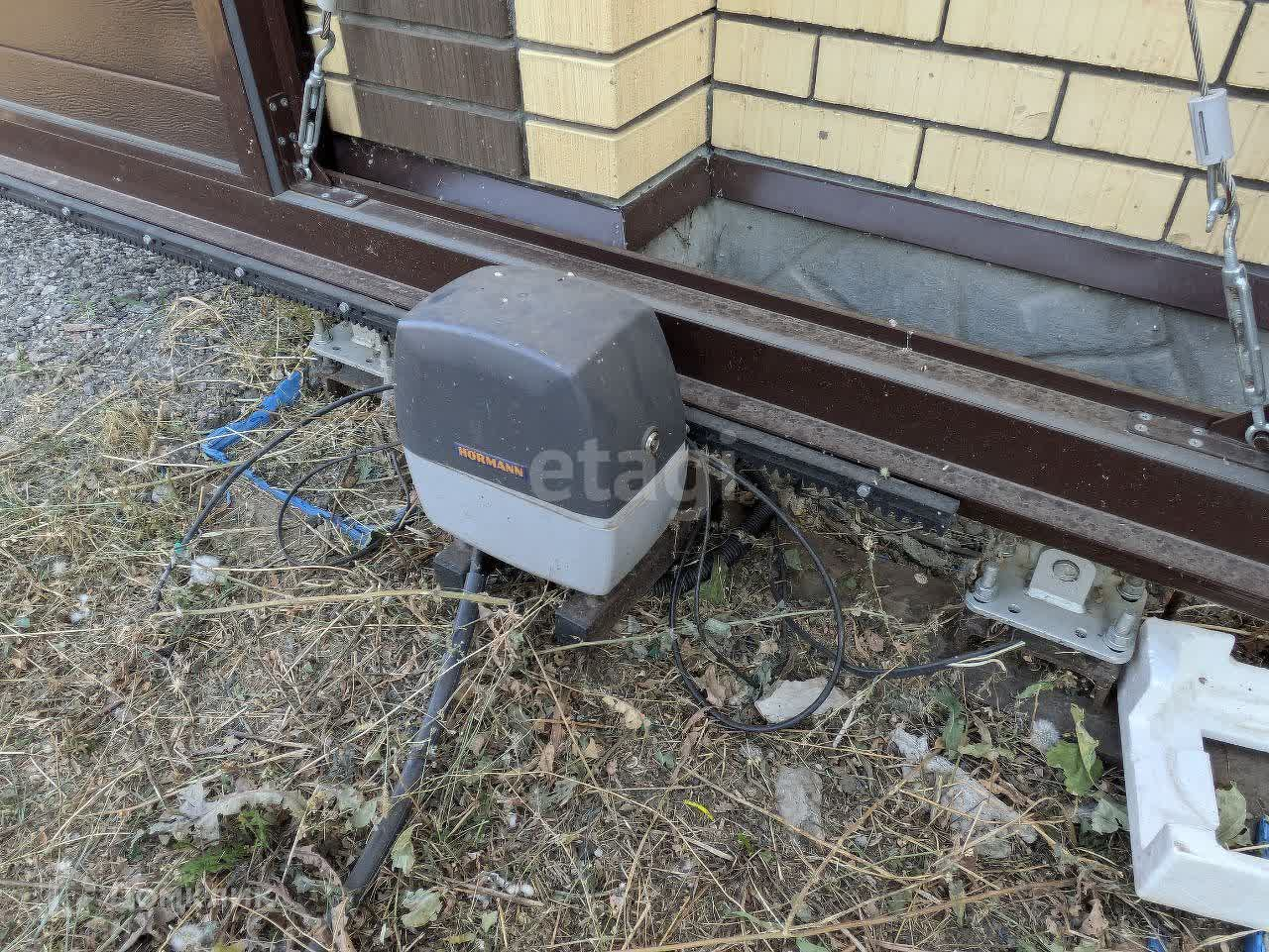 Участок 15 соток, ровный и огороженный, с воротами на электроприводе и кирпичным забором.