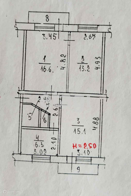 Общая площадь 58.7 м2