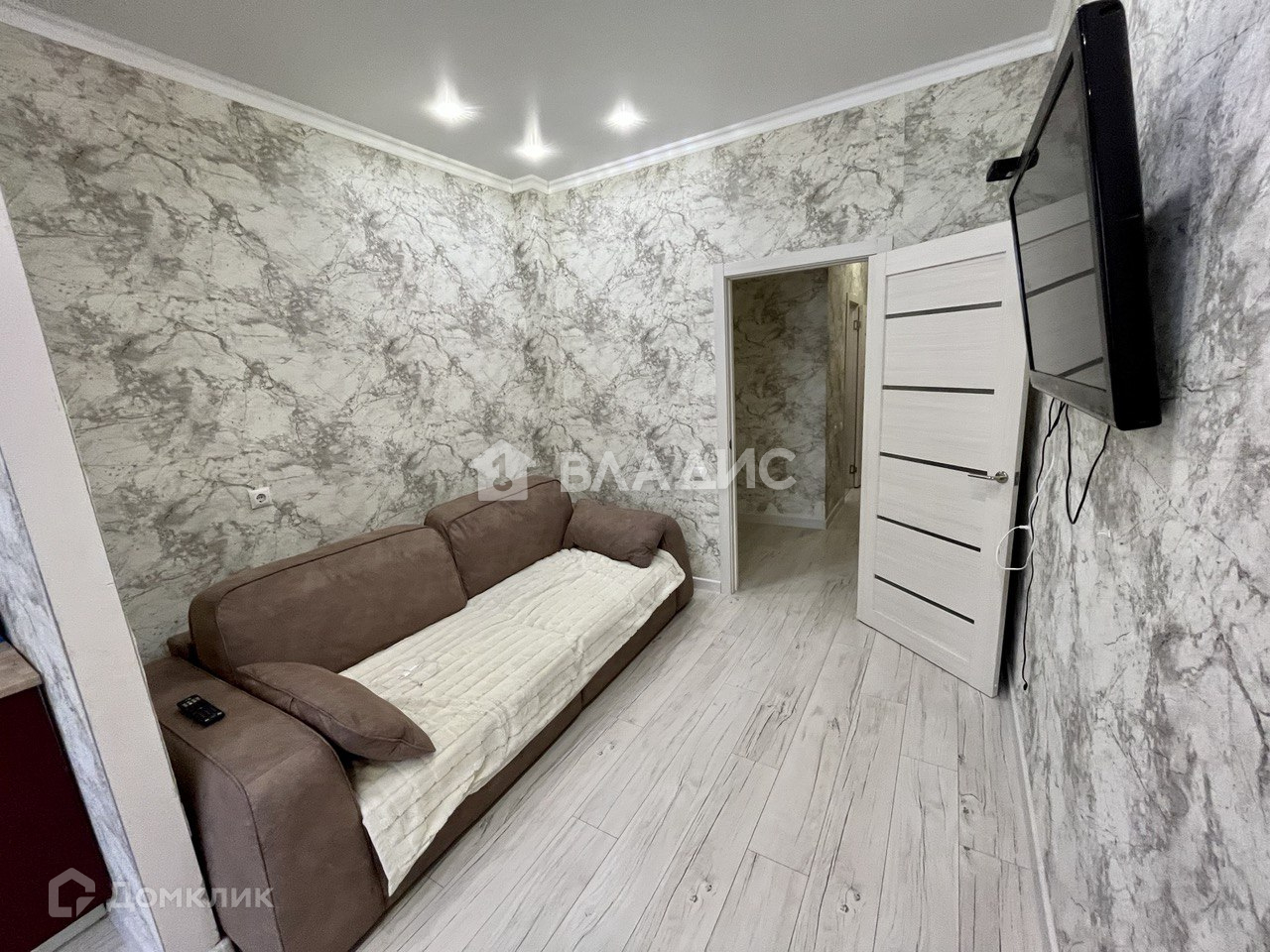 - поклеены современные обои, на полу ламинат отличного качества