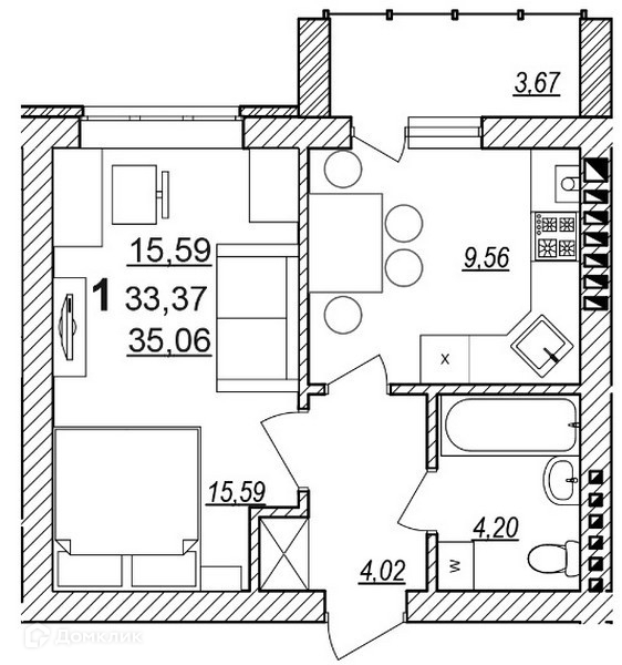 Общая площадь 35 м2