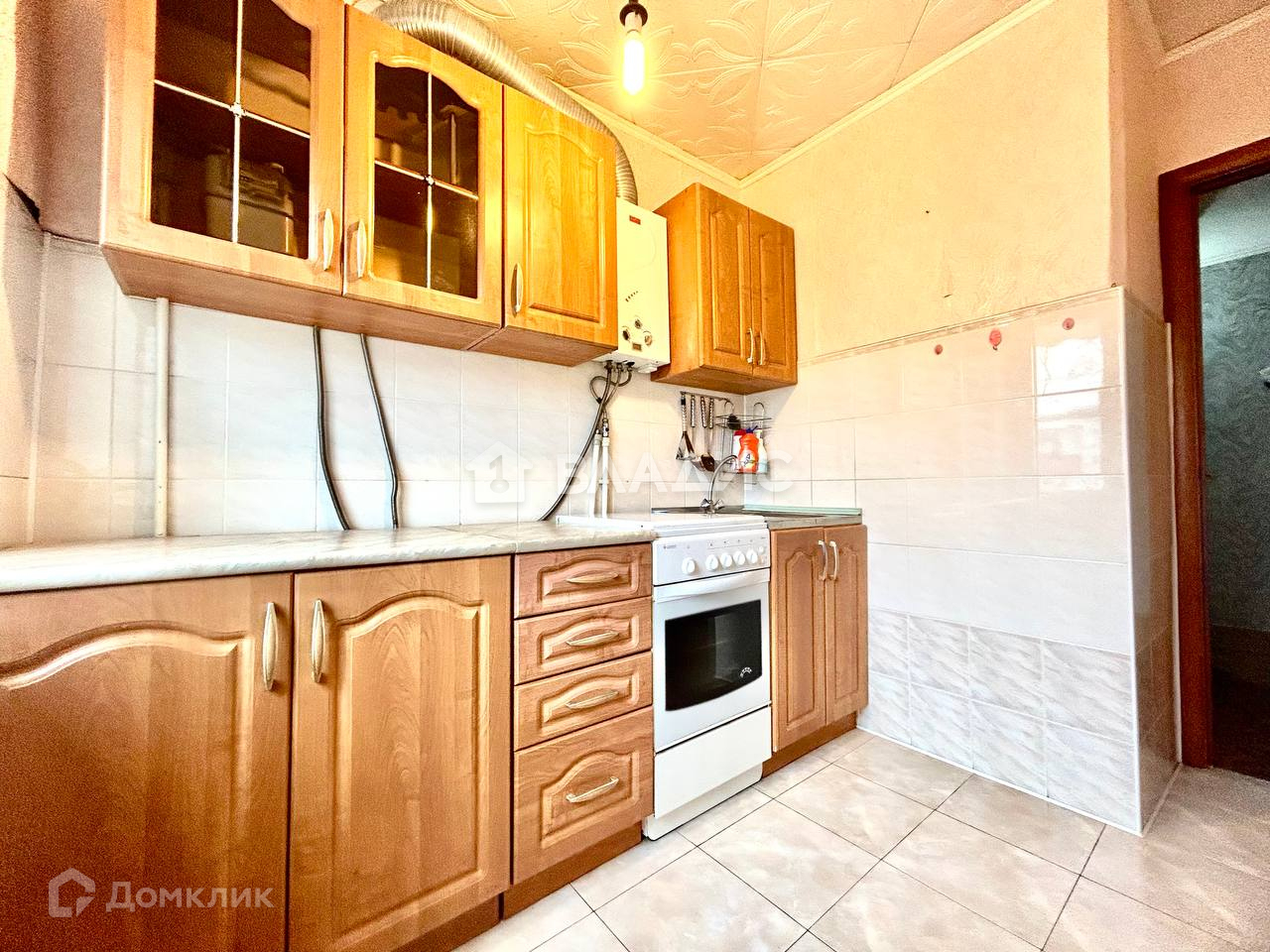 В квартире косметический ремонт: в комнатах аккуратные обои, ровный потолок, на кухне на полу и стенах плитка, в раздельном су - плитка, пластиковые окна и облагороженный застекленный балкон.