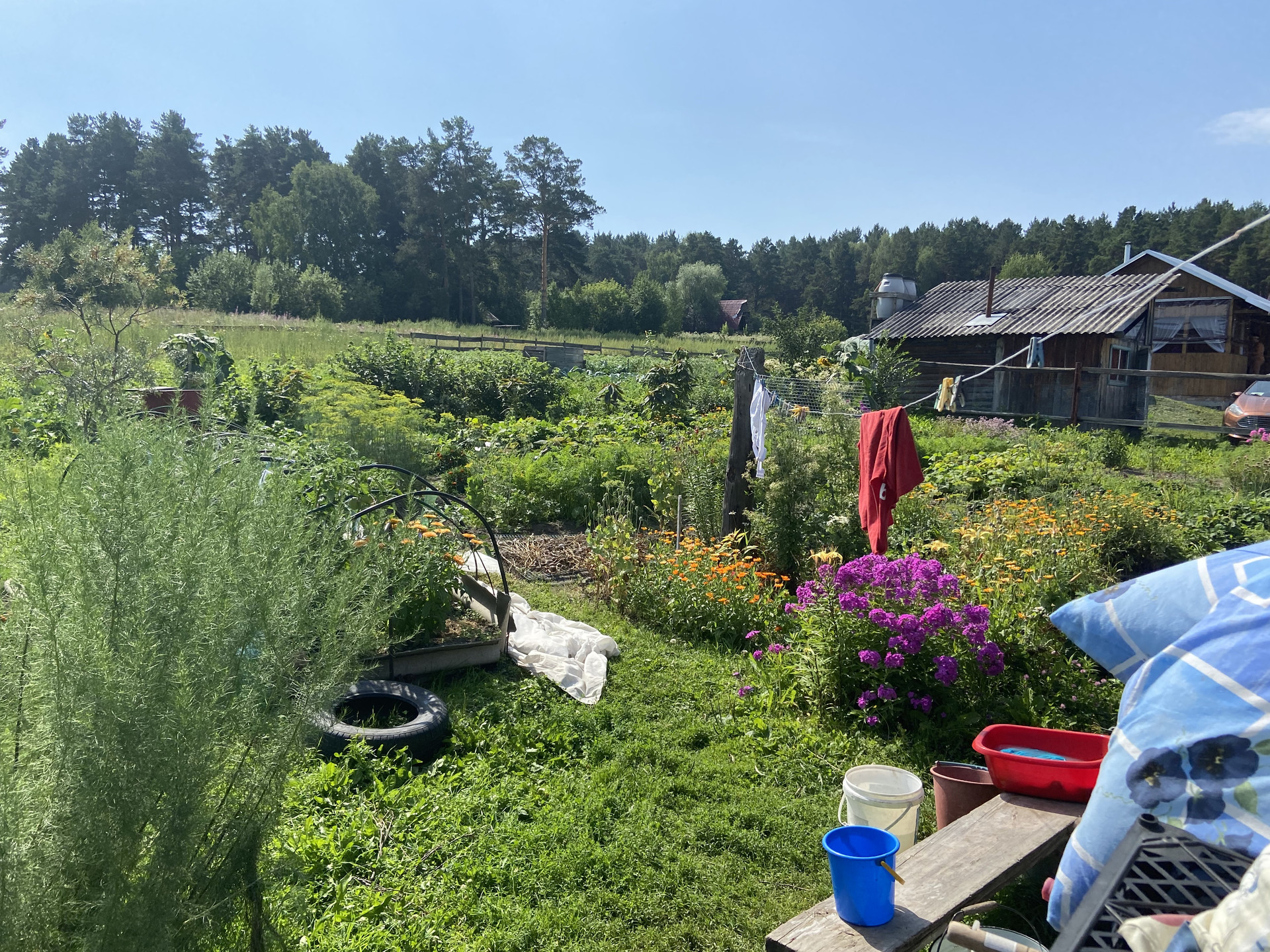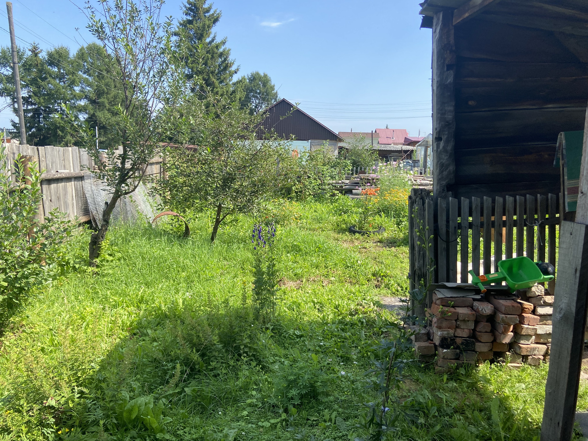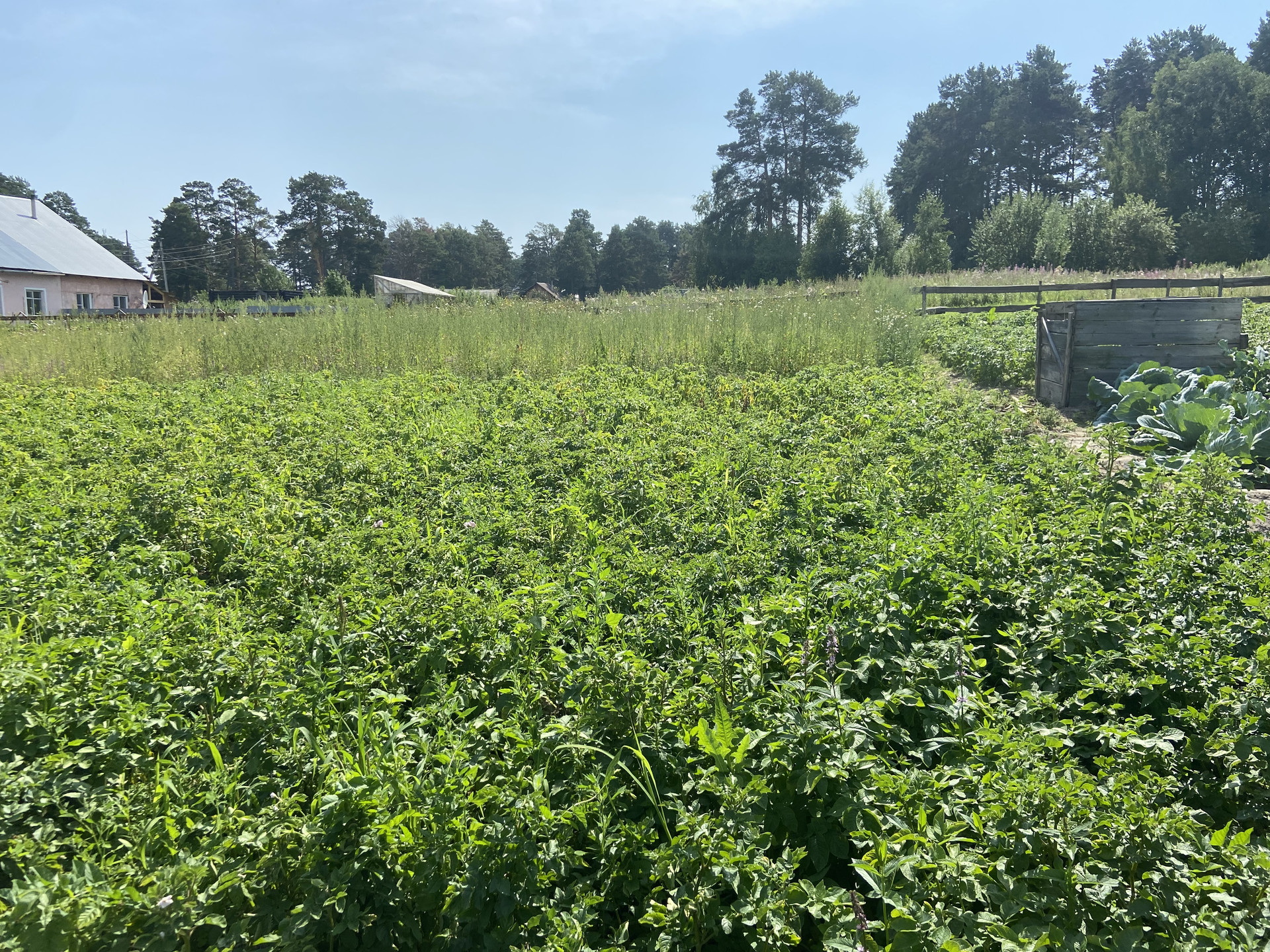Хорошая плодоносная земля,ежегодно высаживаются овощи и фрукты. На территории есть виня  , смородина , крыжовник , облепиха , малина  и несколько самодельных теплиц . На участке стоит дом ,но он старый . Пригодный для жизни только летом . В доме стоит печка ,она топится ,есть свет . Рядом с домом колонка с чистой водой ( при желании можно провести воду на участок .) Возможно прописка . По всей деревни положен асфальт , есть школа , детский садик , магазины и аптека . Вокруг деревни стоил лес в котором много ягод и грибов , так же проходит река Обь.