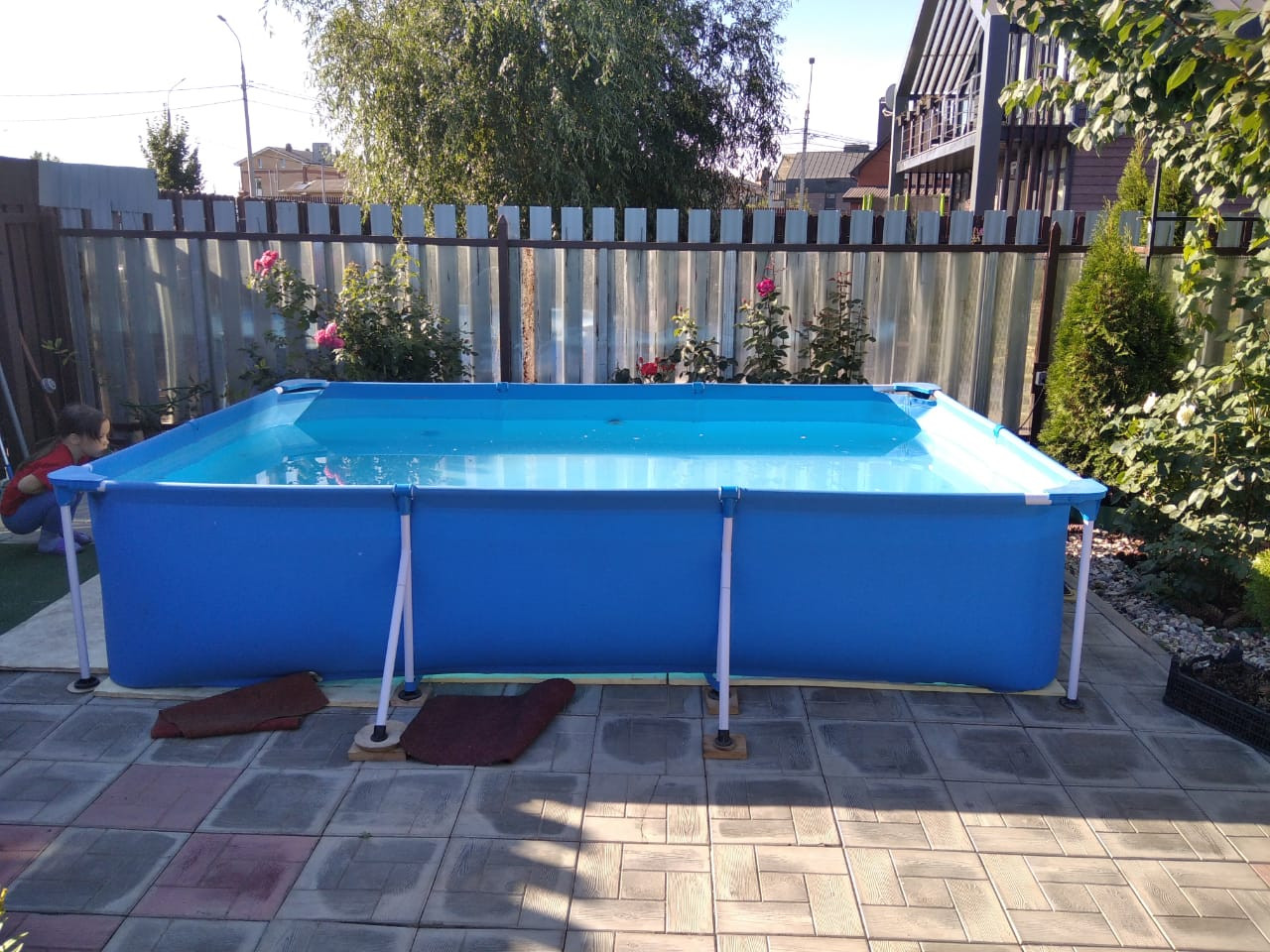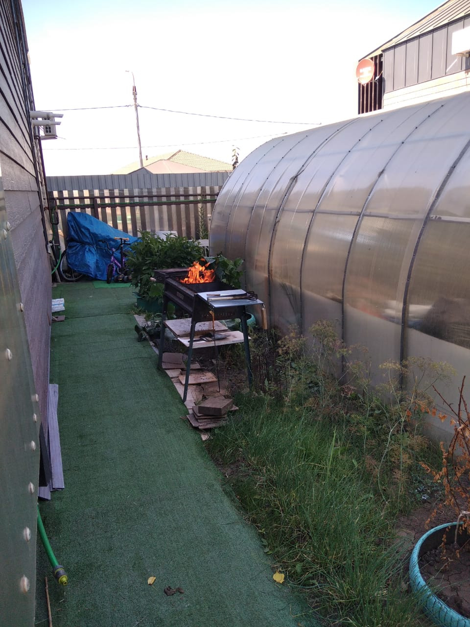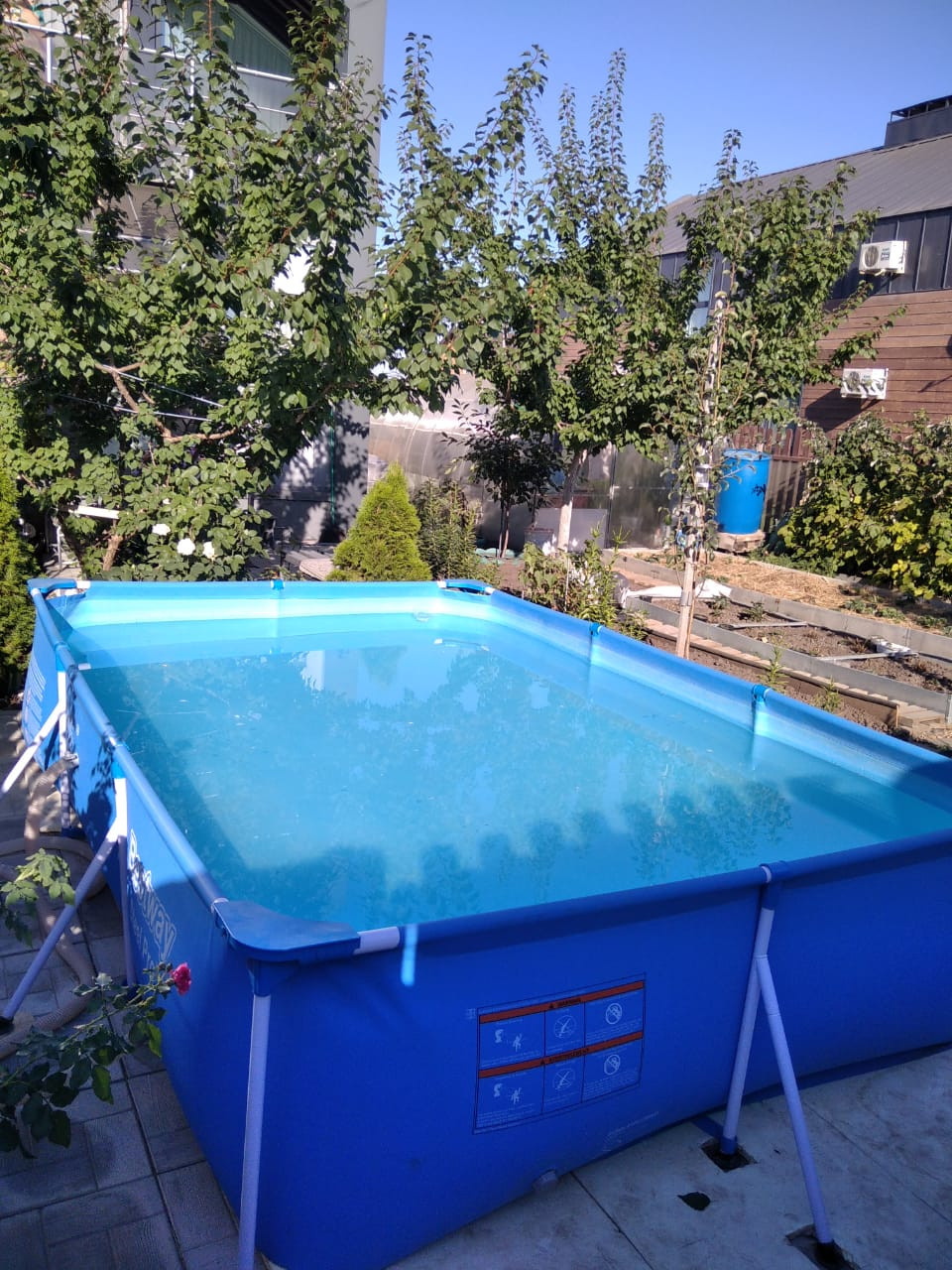 По всему участку тропинки, расположена теплица 3на6, саженцы и плодоносящие деревья: абрикос, груша, слива; кустарники: смородина, ежевика, малина, виноград, голубика, жимолось; туи, можжевельник, сортовые розы, сортовая клубника Мальвина и Соната. Все плодоносит. Есть песочница, площадка для бассейна и парковочное место для машины.